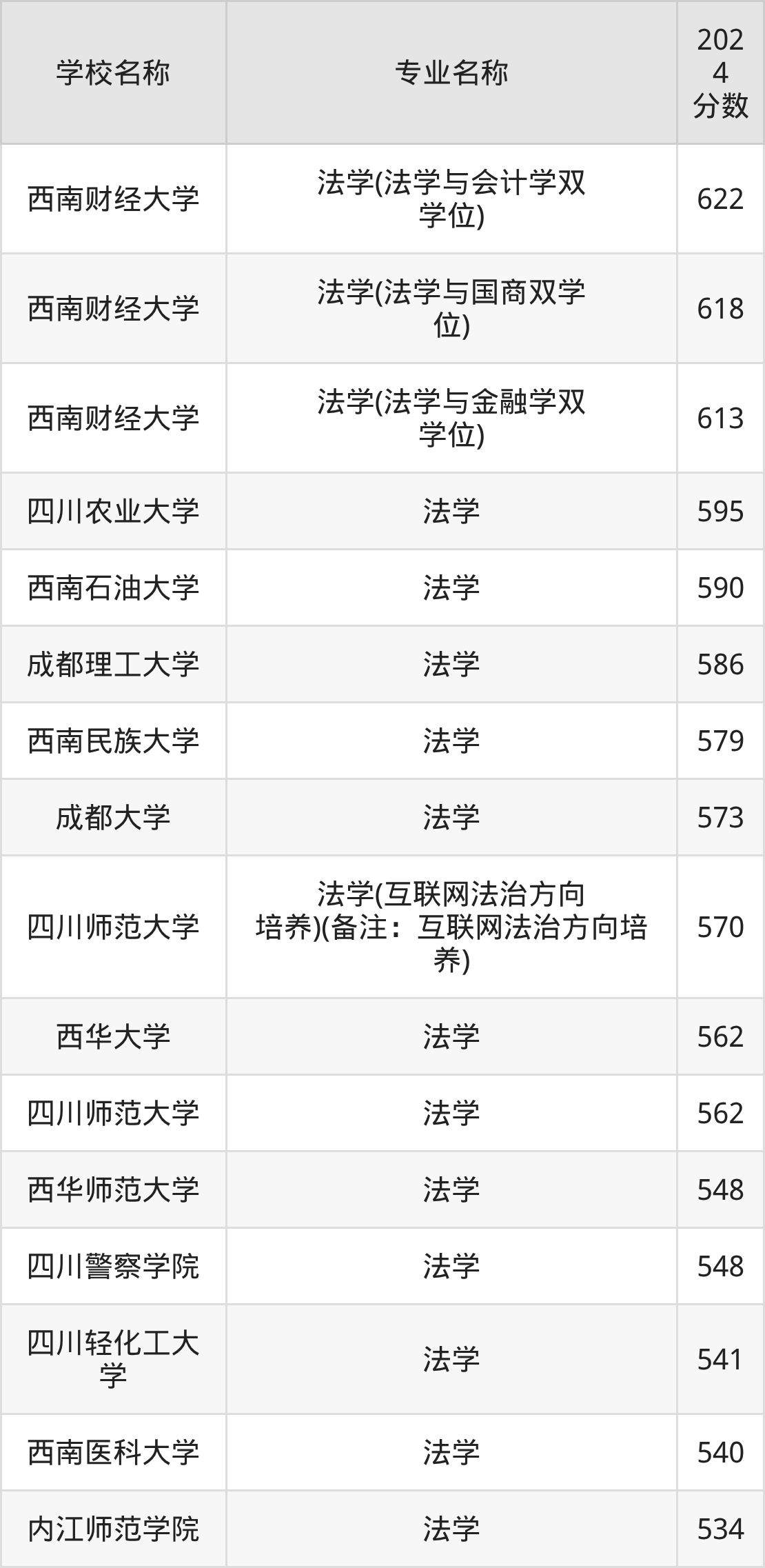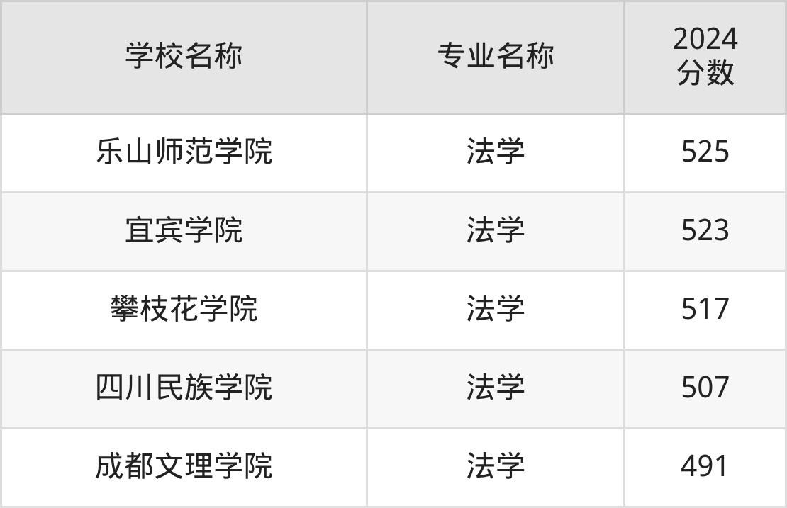 下文将为大家展示四川省大学法学专业2024年在四川高考的最低录取分数线!