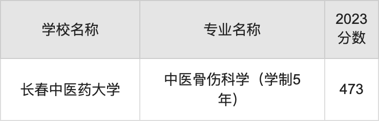 | 长春中医药大学 | 中医骨伤科学(学制5 年) | 494 |