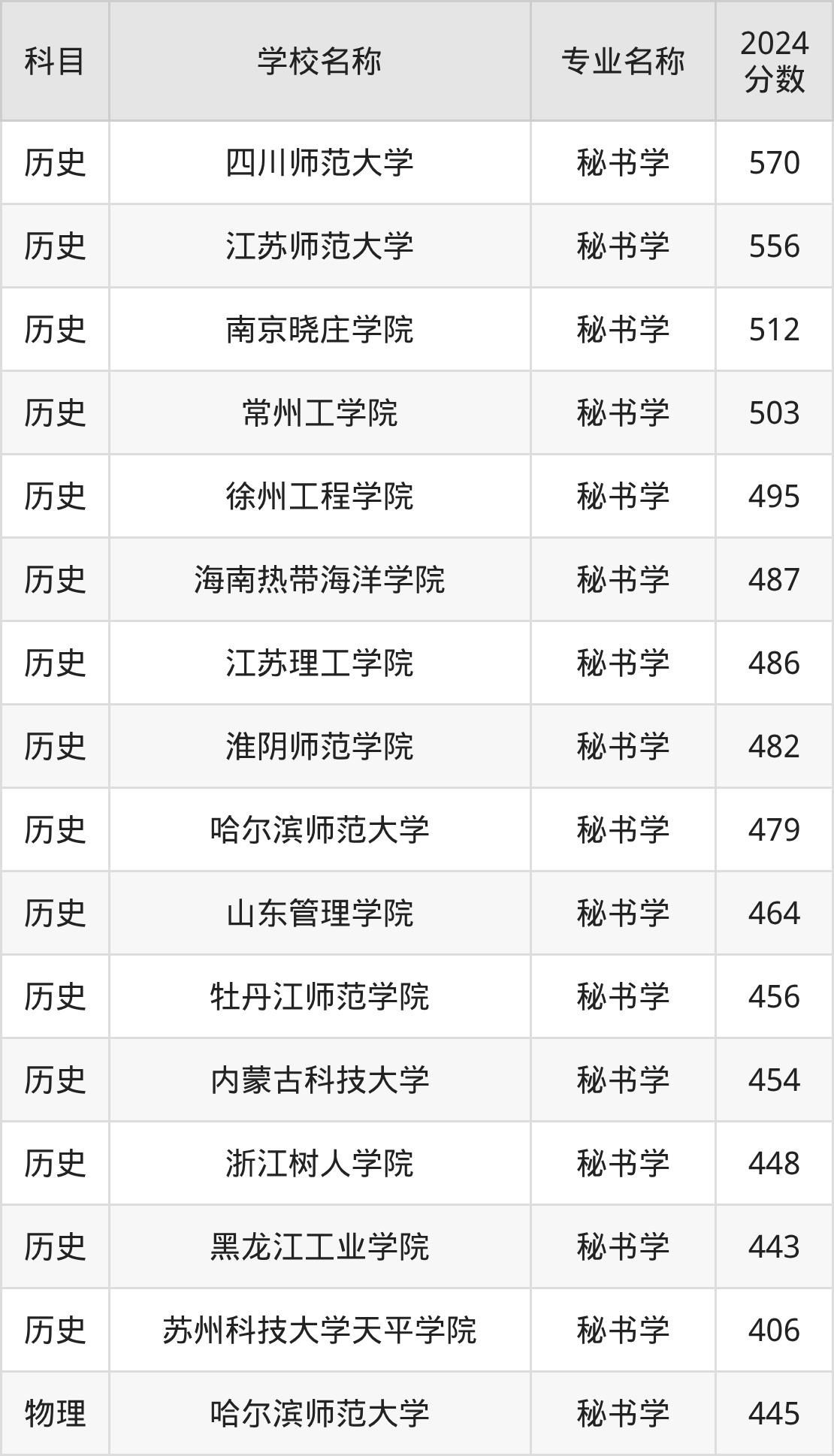 | 学校名称 | 专业名称 | 2024 分数 |