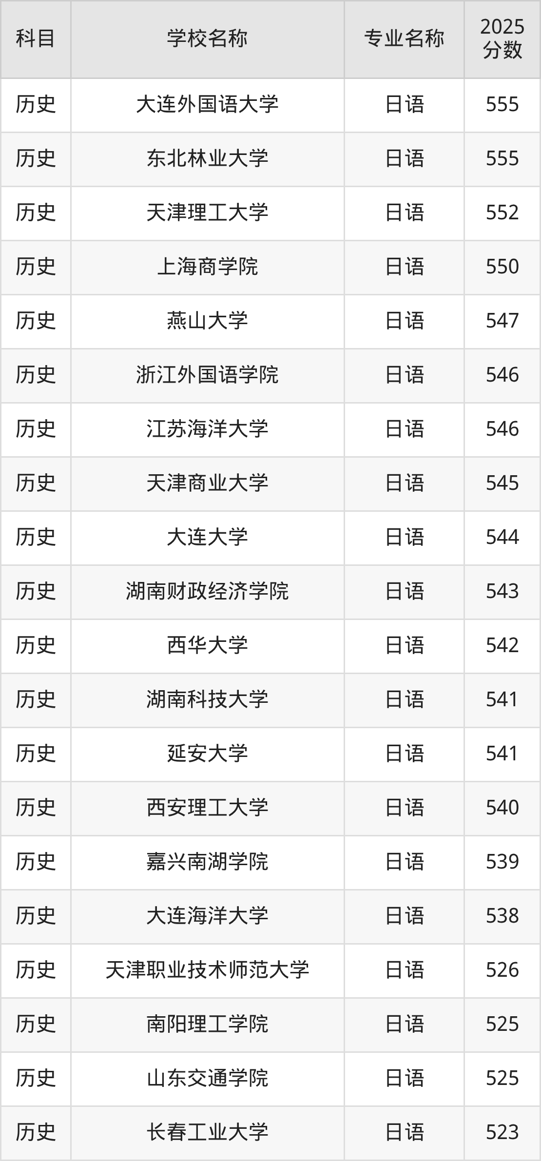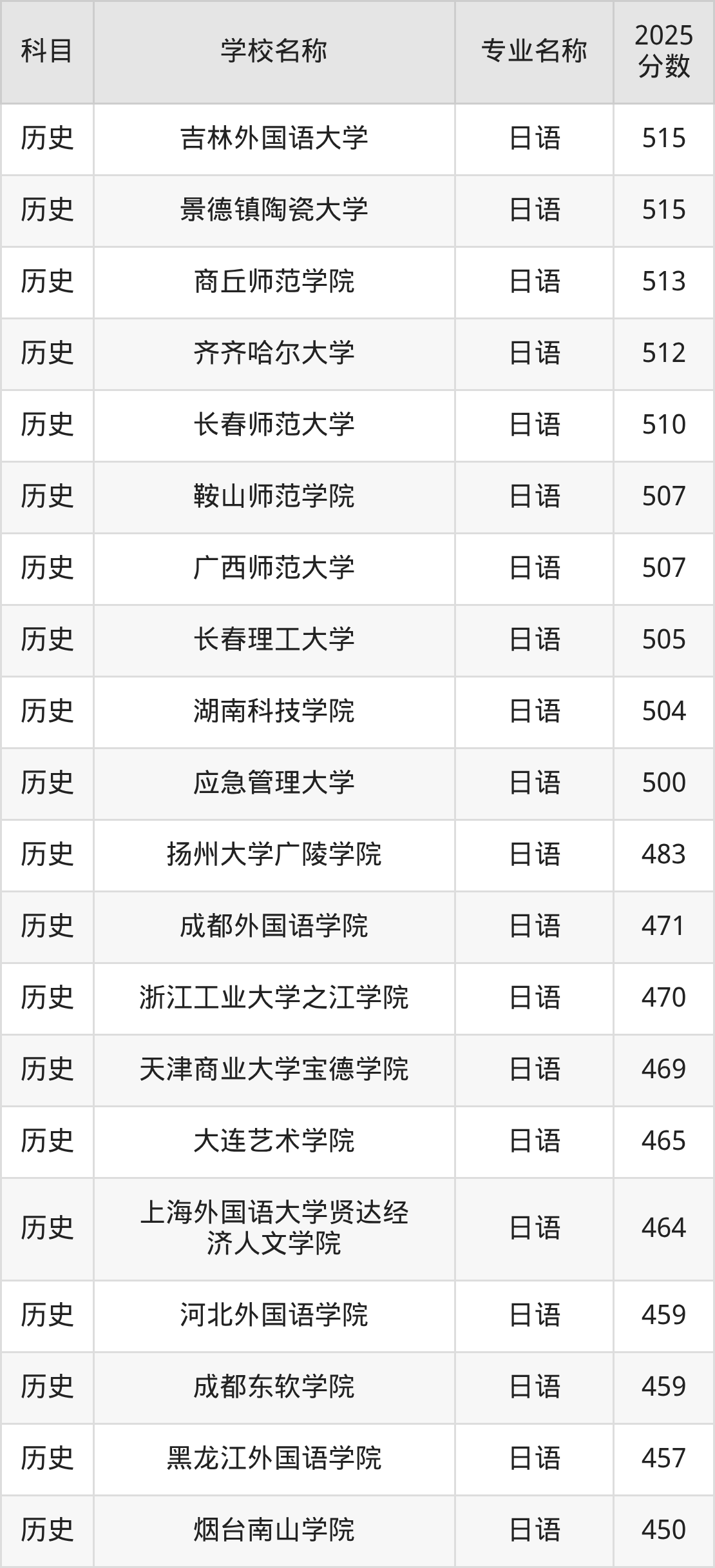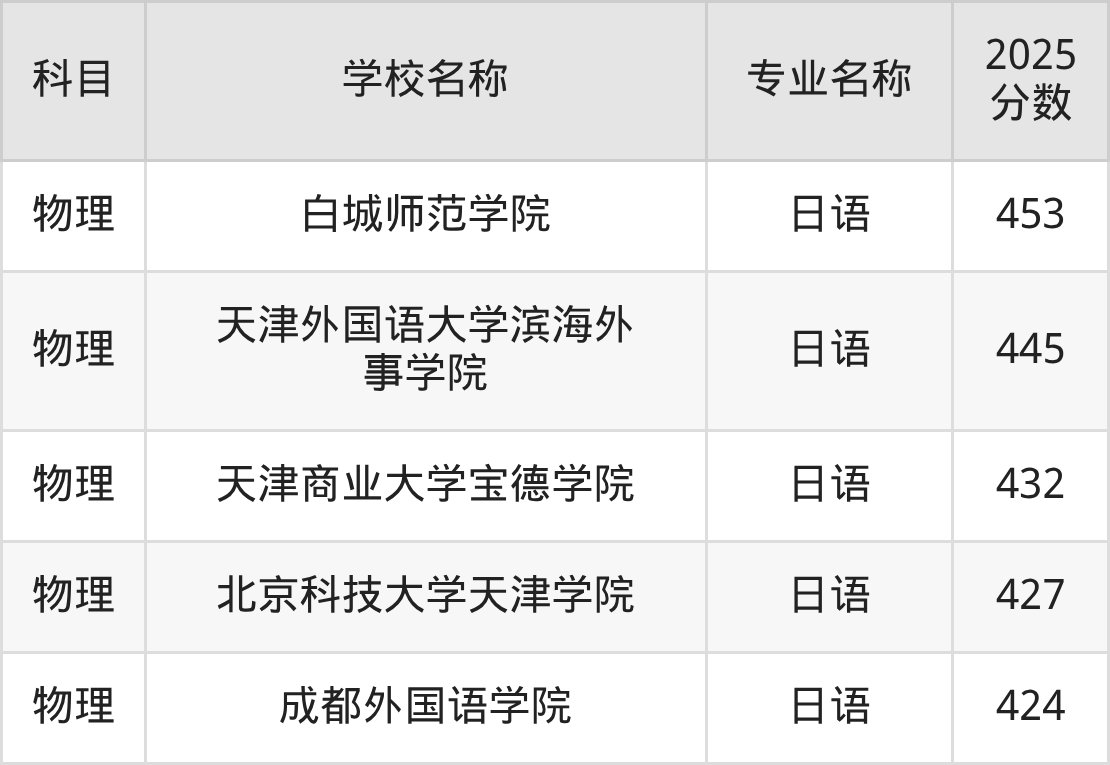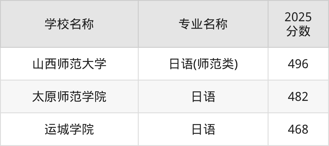 圆梦小编根据山西2025年高考历史组专业分,将开设了日语专业且位于山西省内的大学按照“录取分”从高到低排序,得出了以上榜单。