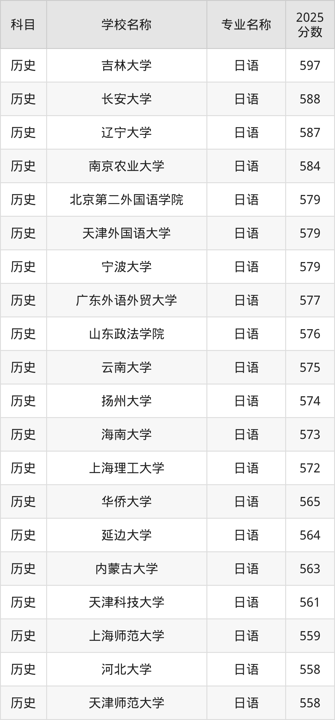 | 山西大学 | 日语 | 548 |