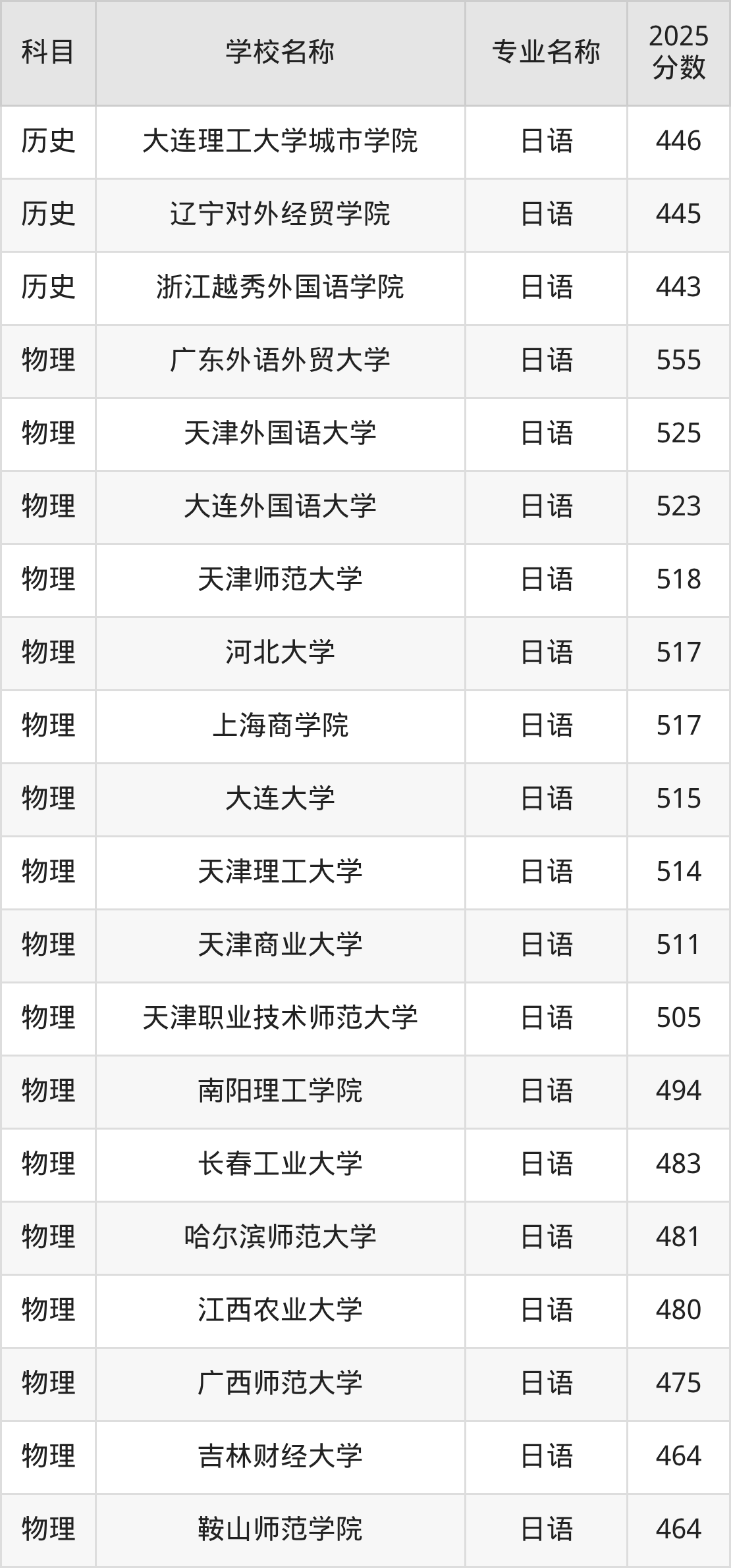 | 学校名称 | 专业名称 | 2025 分数 |