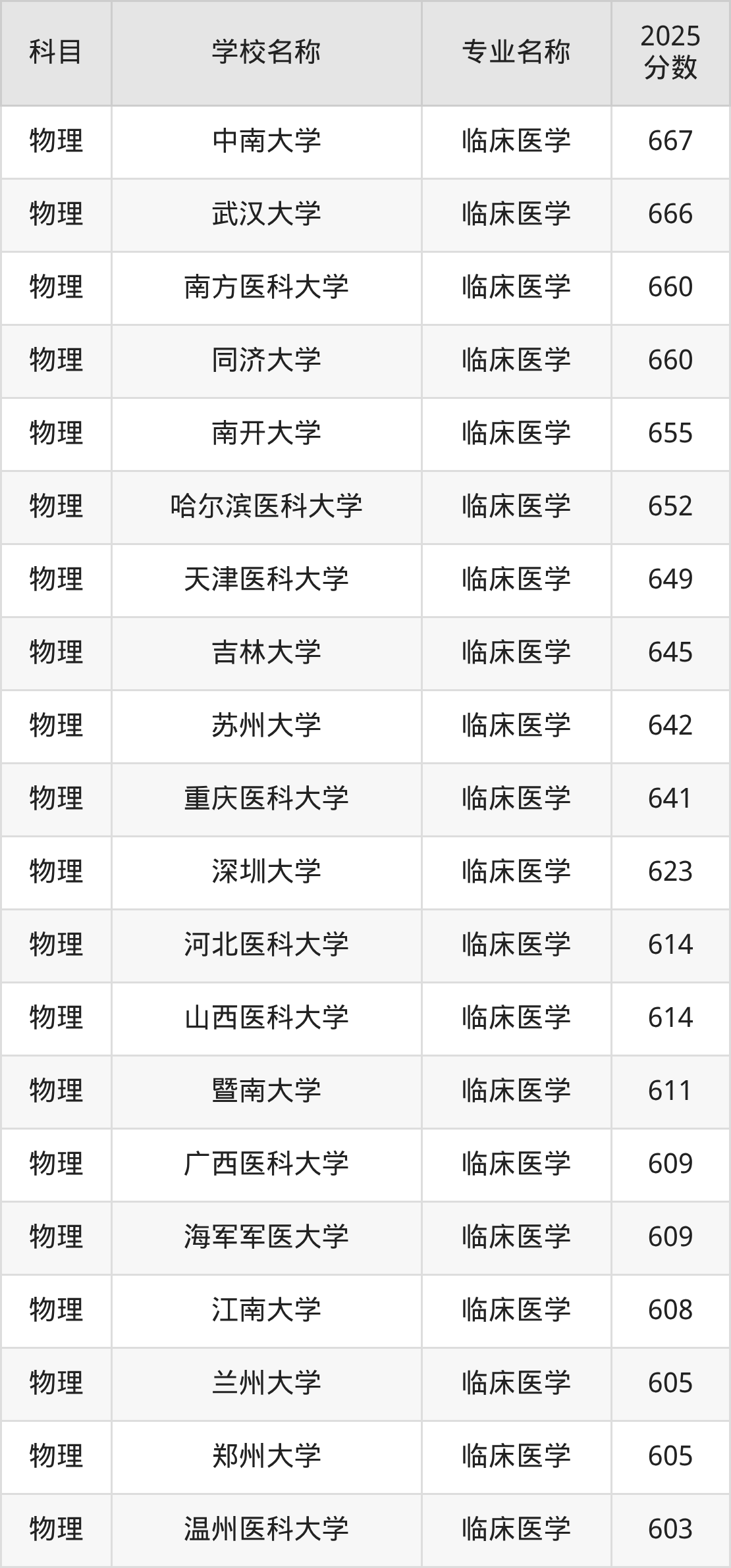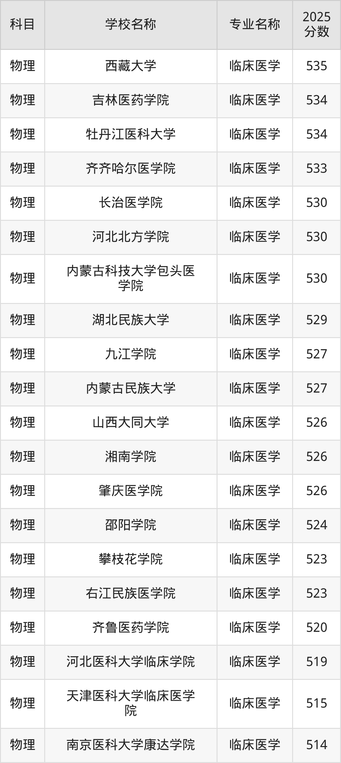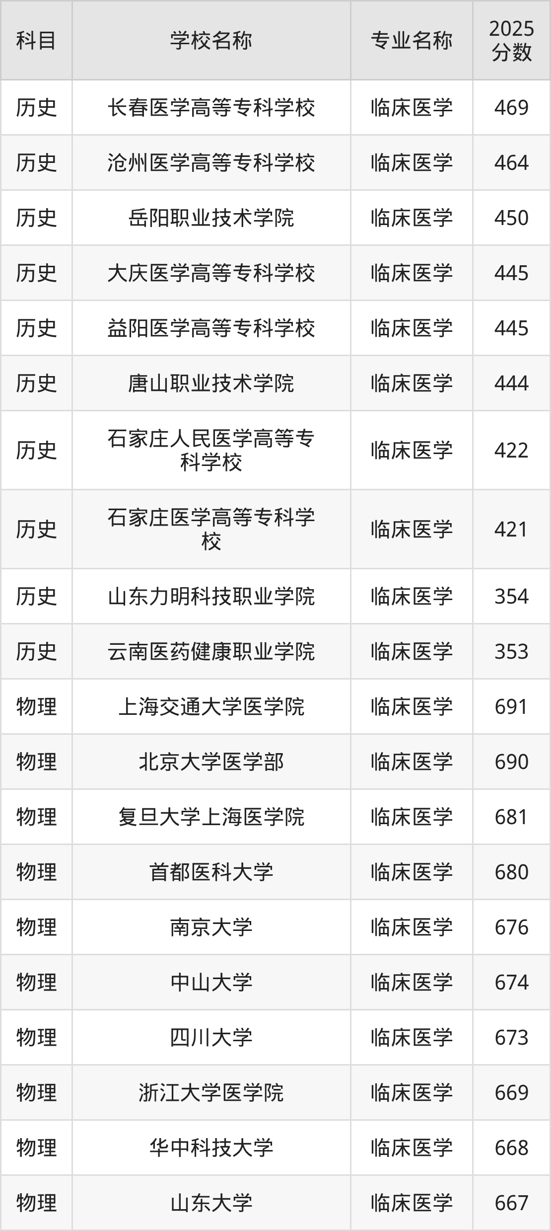 下文将为大家展示辽宁省大学临床医学专业2025年在辽宁高考的最低录取分数线!