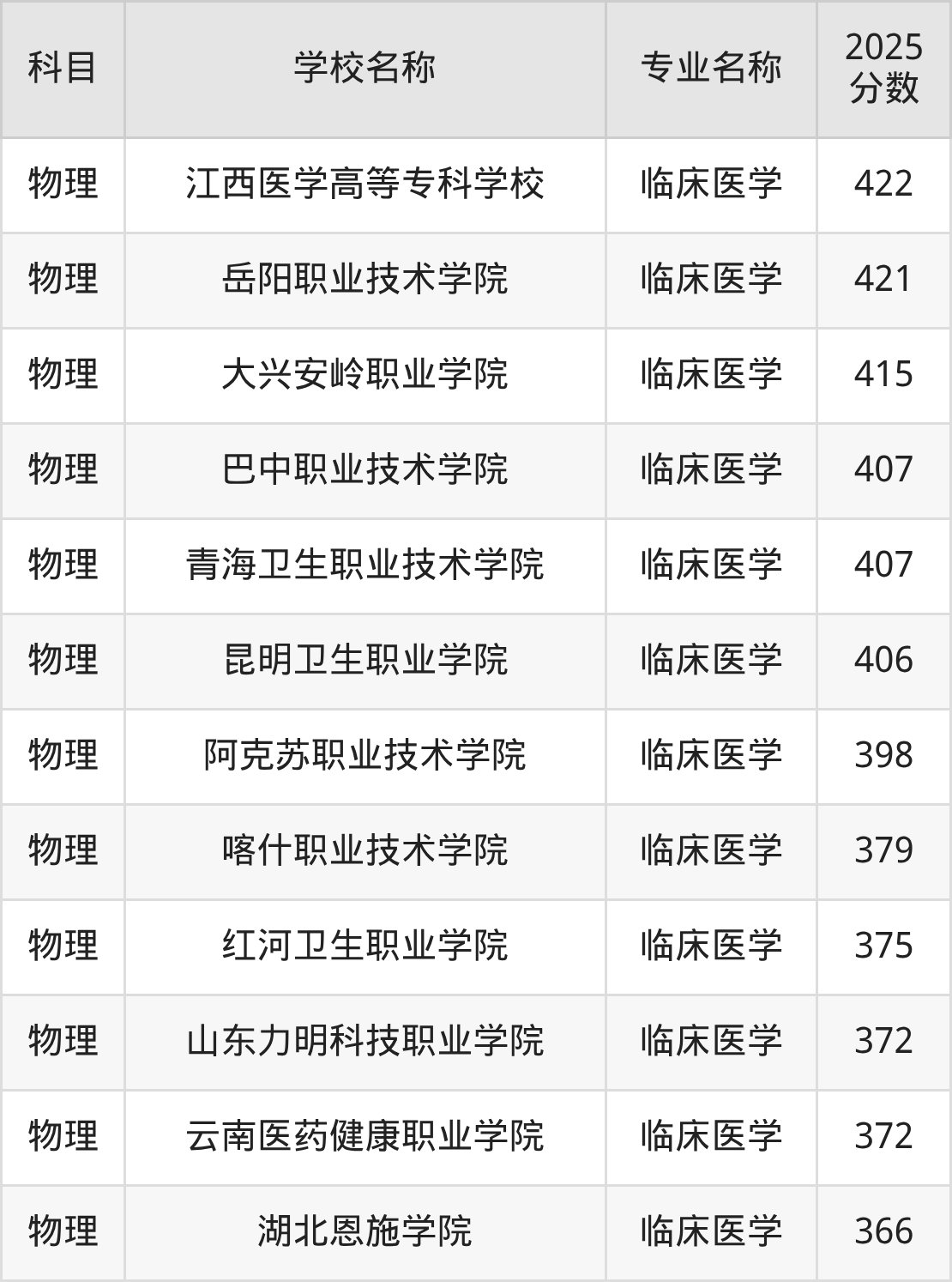通过上文大家可以知晓,在辽宁省内招临床医学专业的院校数量较少,所以下文将为2026届高考生继续展示:省外大学的临床医学专业2025年在辽宁高考的录取情况,包含长春医学高等专科学校、沧州医学高等专科学校、岳阳职业技术学院、大庆医学高等专科学校、益阳医学高等专科学校。