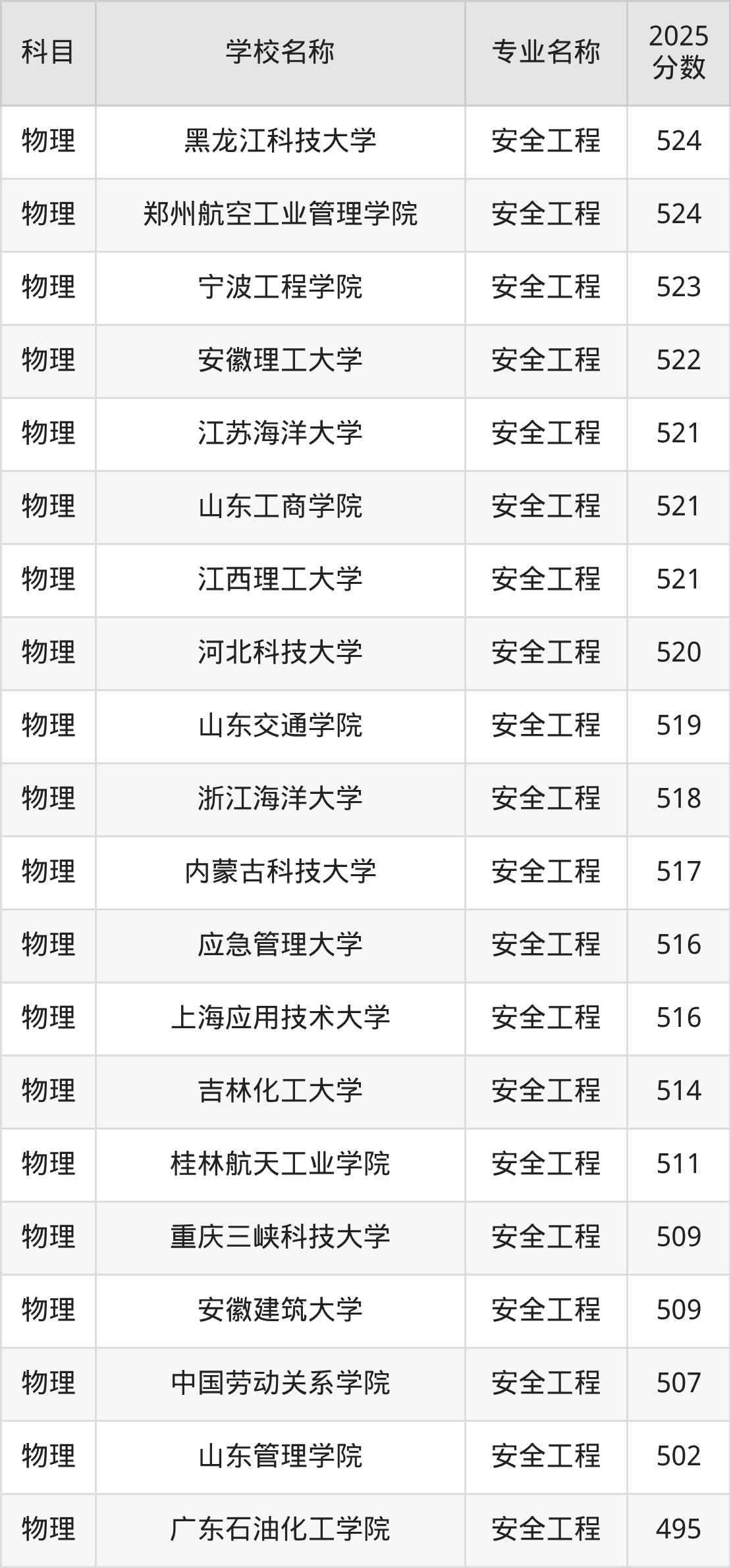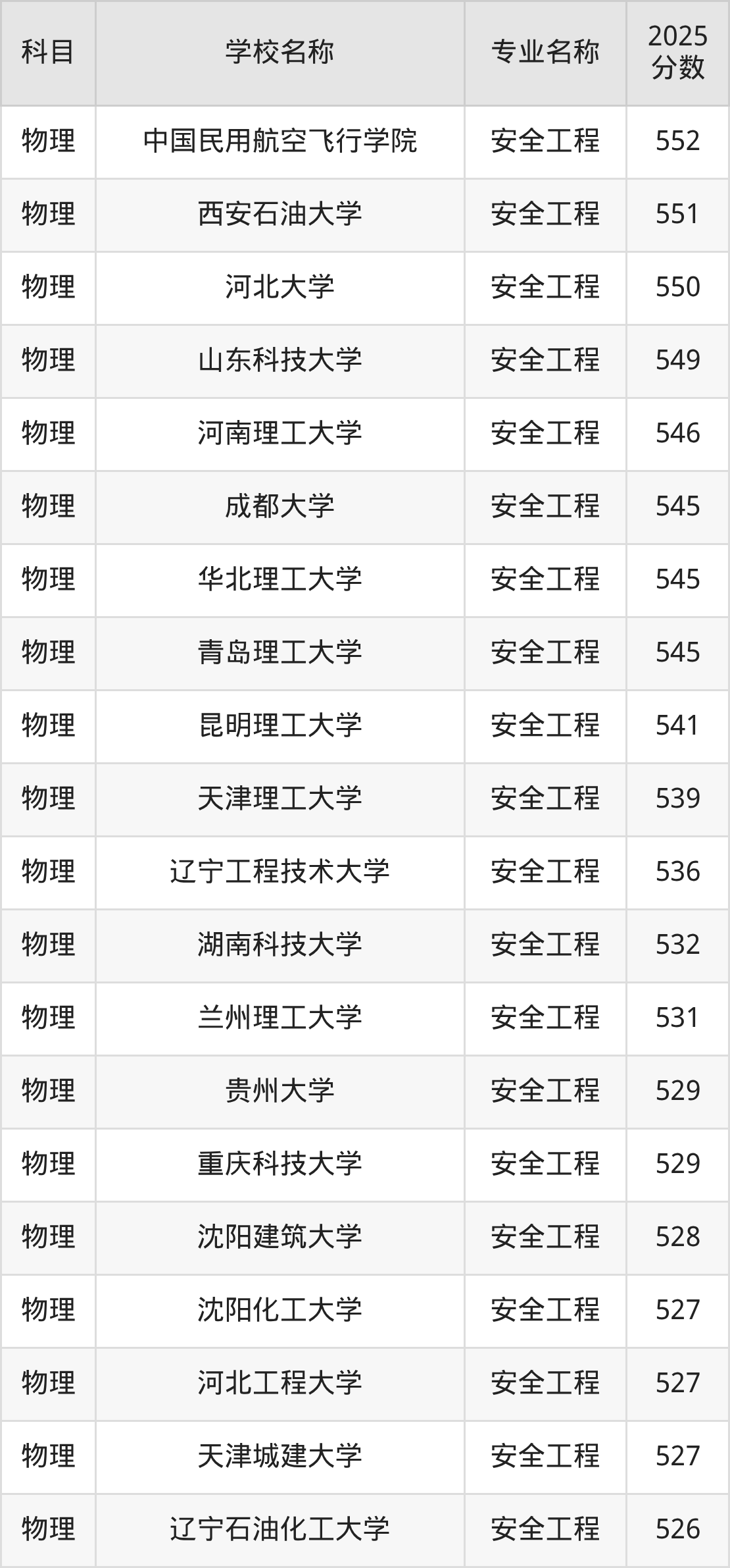 下文将为大家展示山西省大学安全工程专业2025年在山西高考的最低录取分数线!