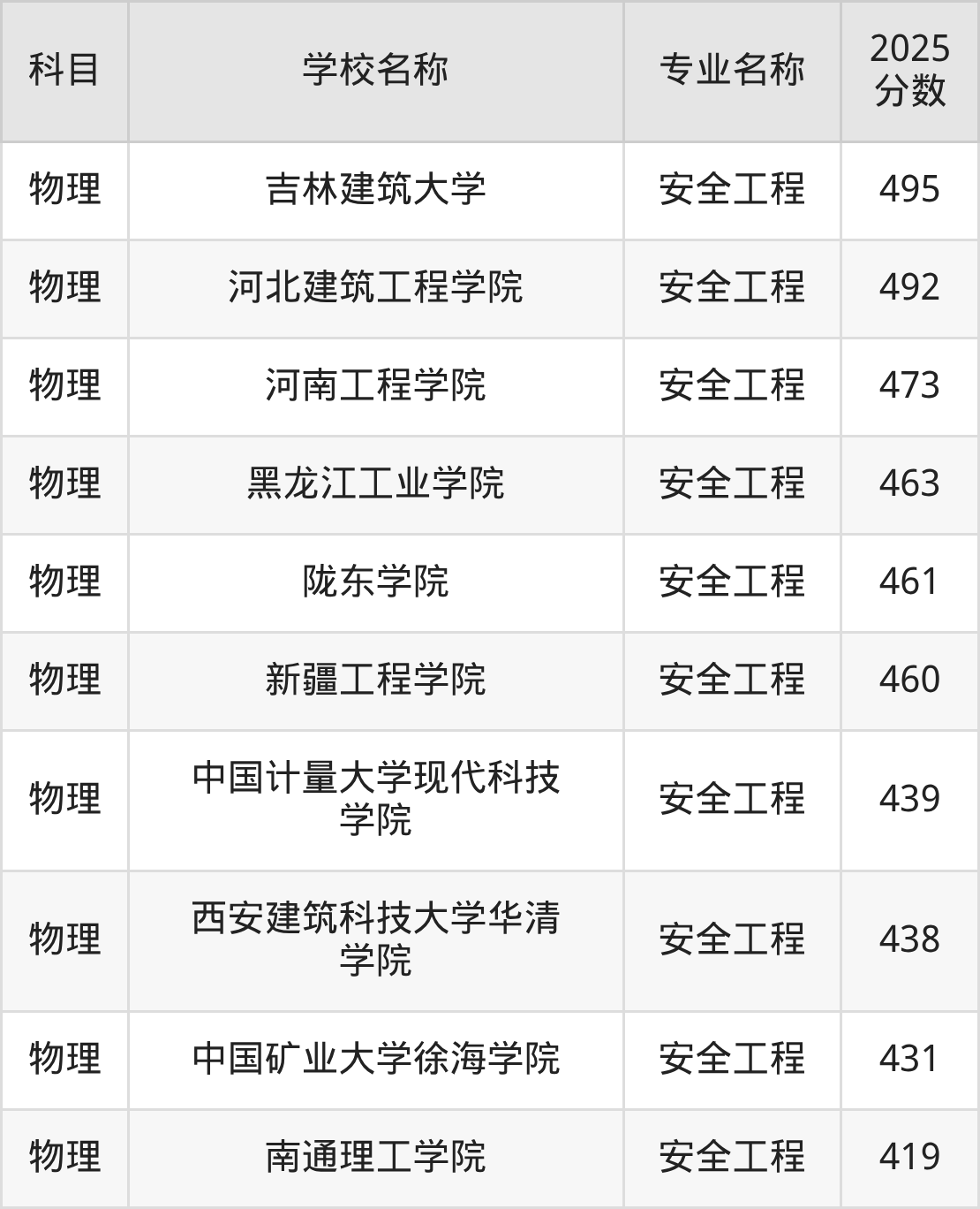 | 山西能源学院 | 安全工程 | 452 |