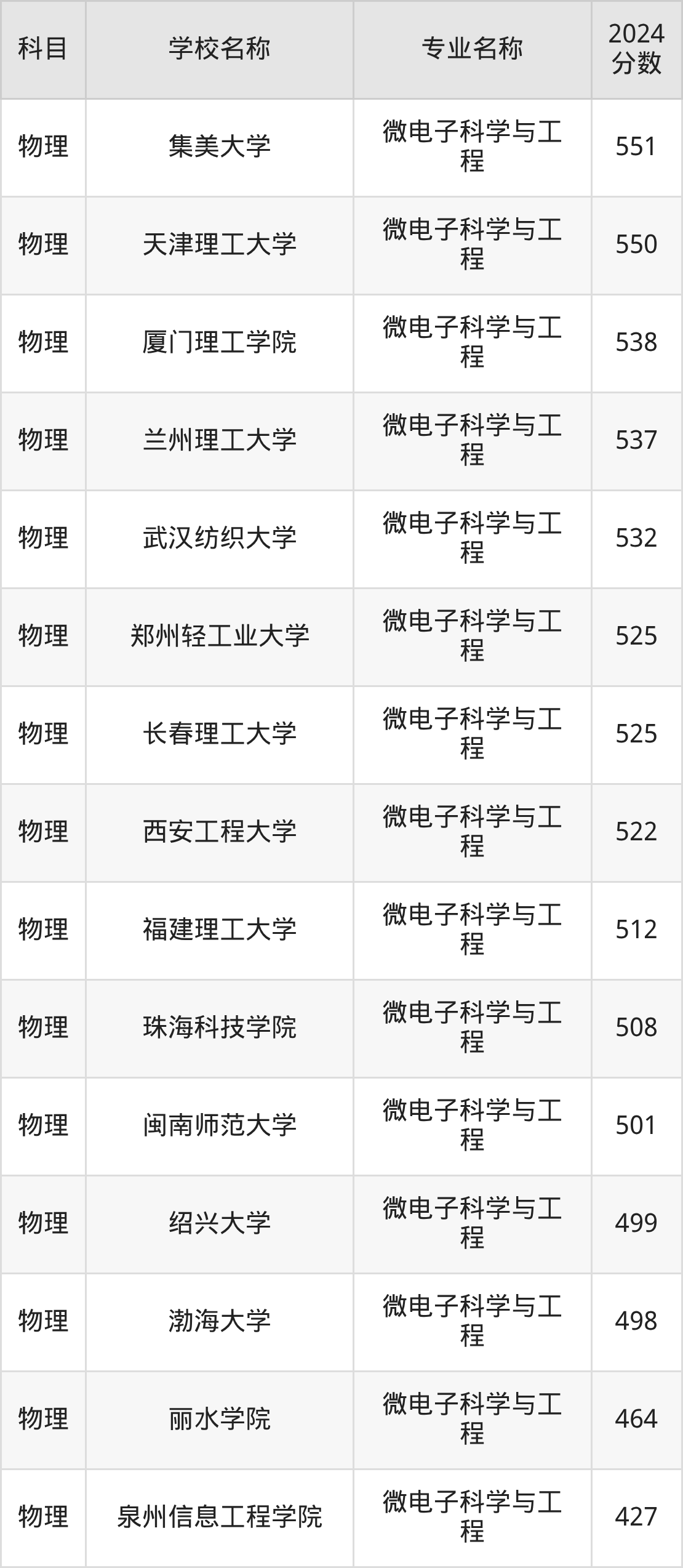 | 湖南工程学院 | 微电子科学与工 程 | 481 |