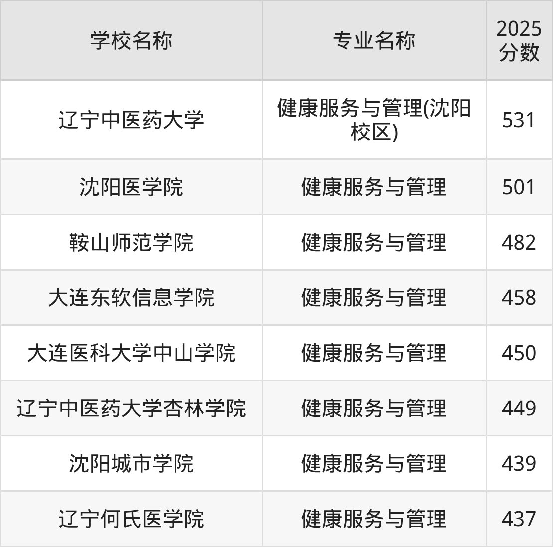 下文将为大家展示辽宁省大学健康服务与管理专业2025年在辽宁高考的最低录取分数线!