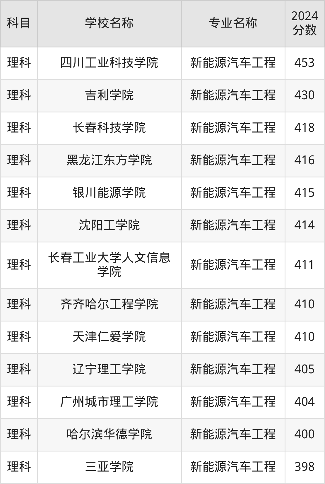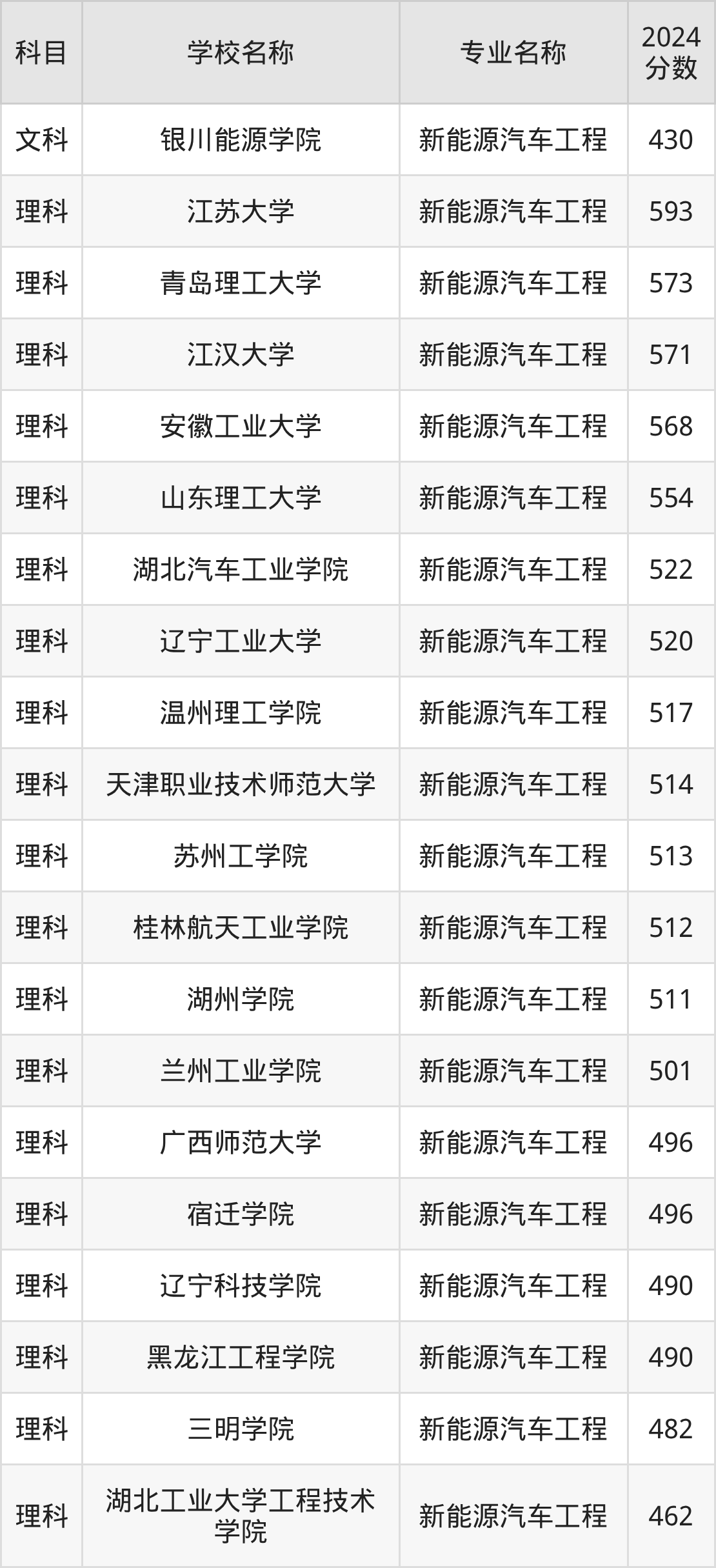 通过上文大家可以知晓,在河南省内招新能源汽车工程专业的院校数量较少,所以下文将为2026届高考生继续展示:省外大学的新能源汽车工程专业2024年在河南高考的录取情况,包含银川能源学院、江苏大学、青岛理工大学、江汉大学、安徽工业大学。