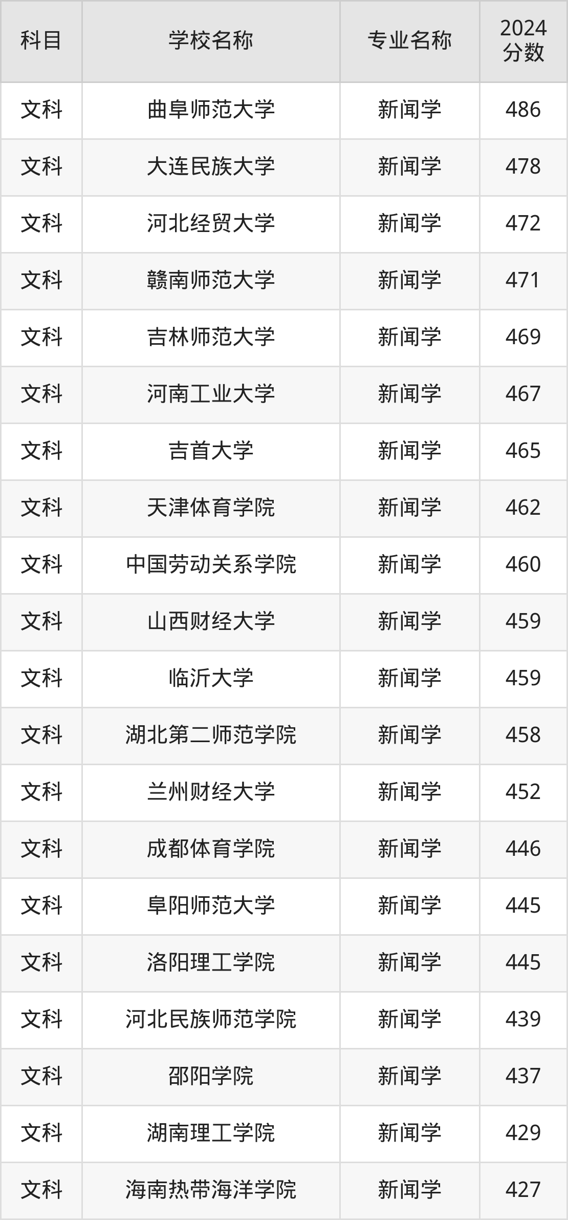 | 呼和浩特民族学院 | 新闻学(办学地 点:校本部) | 435 |