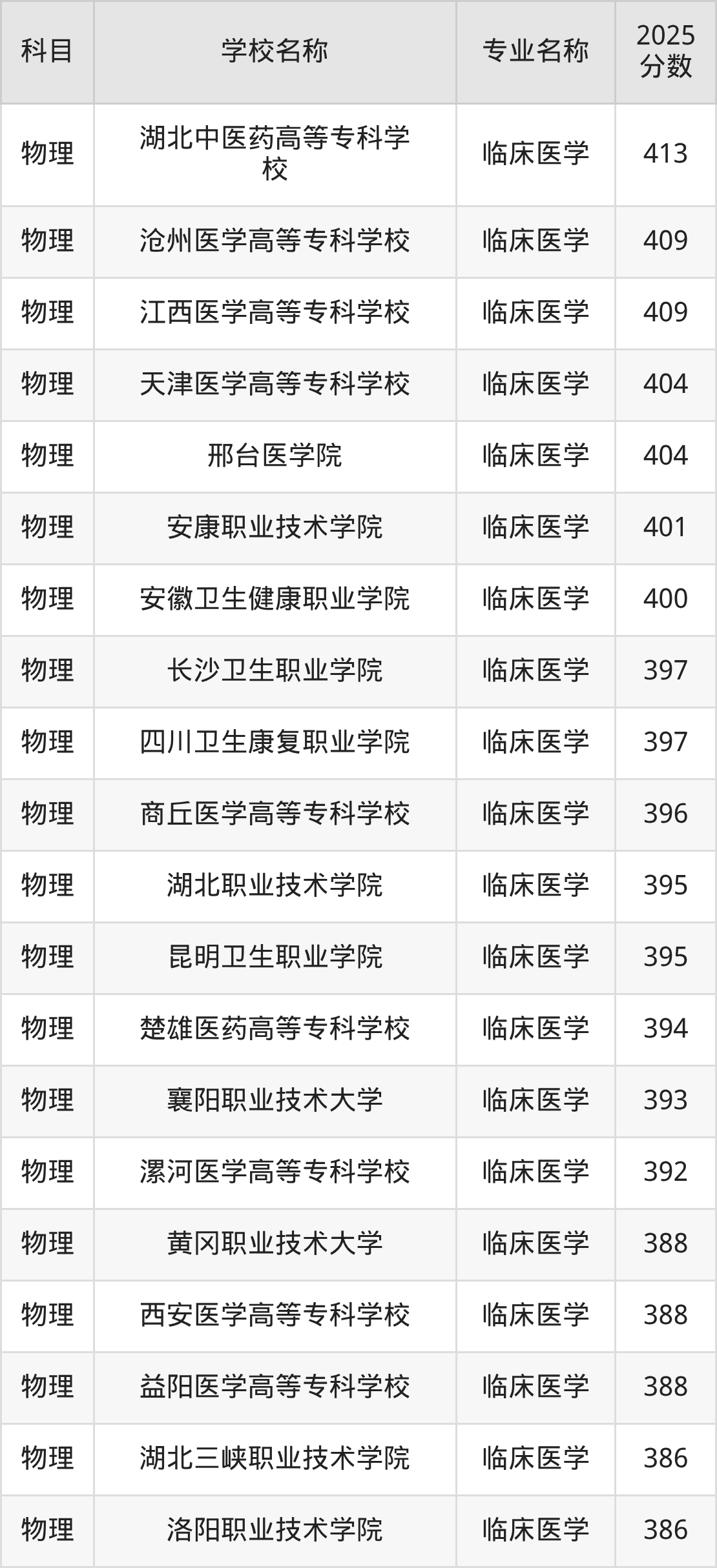 贵州高考物理组:临床医学专业的最低分是368分~614分