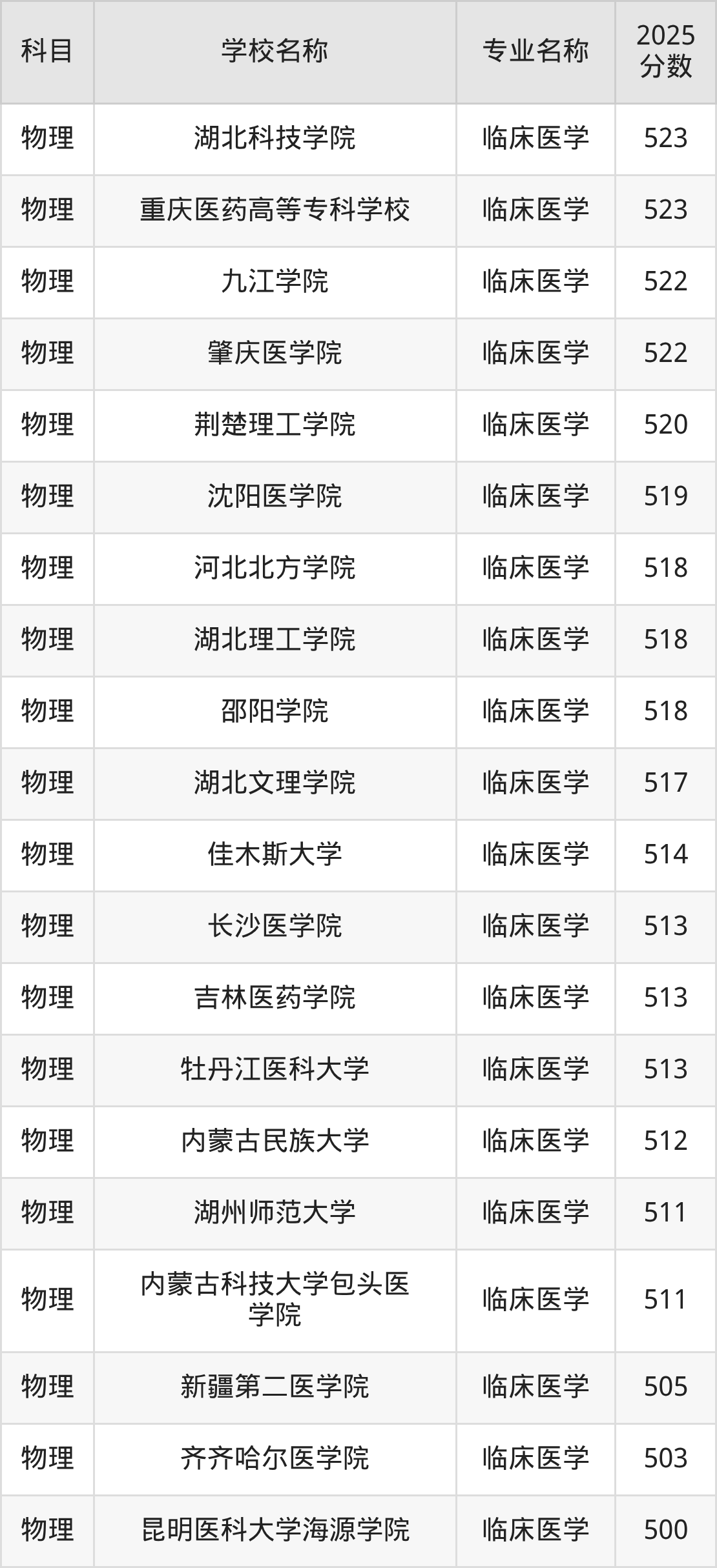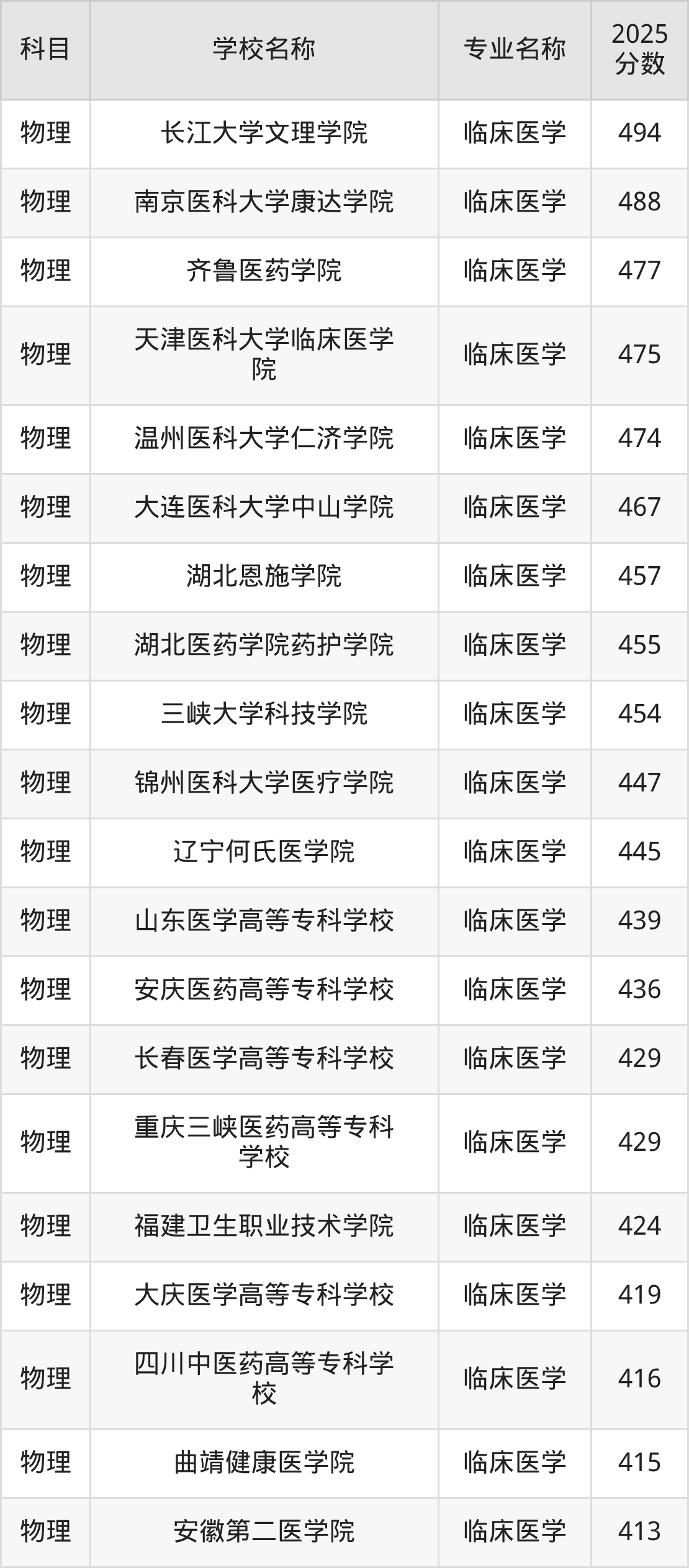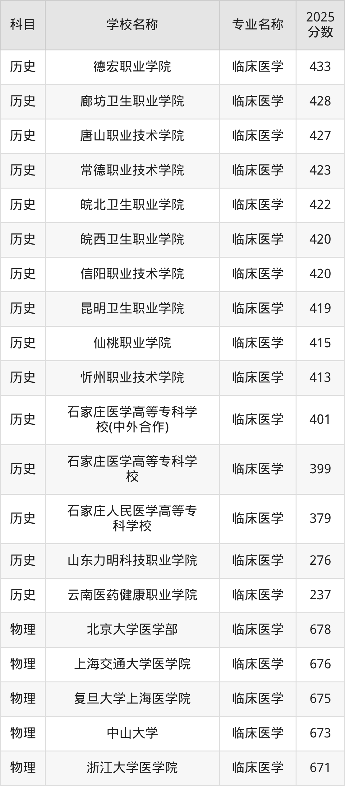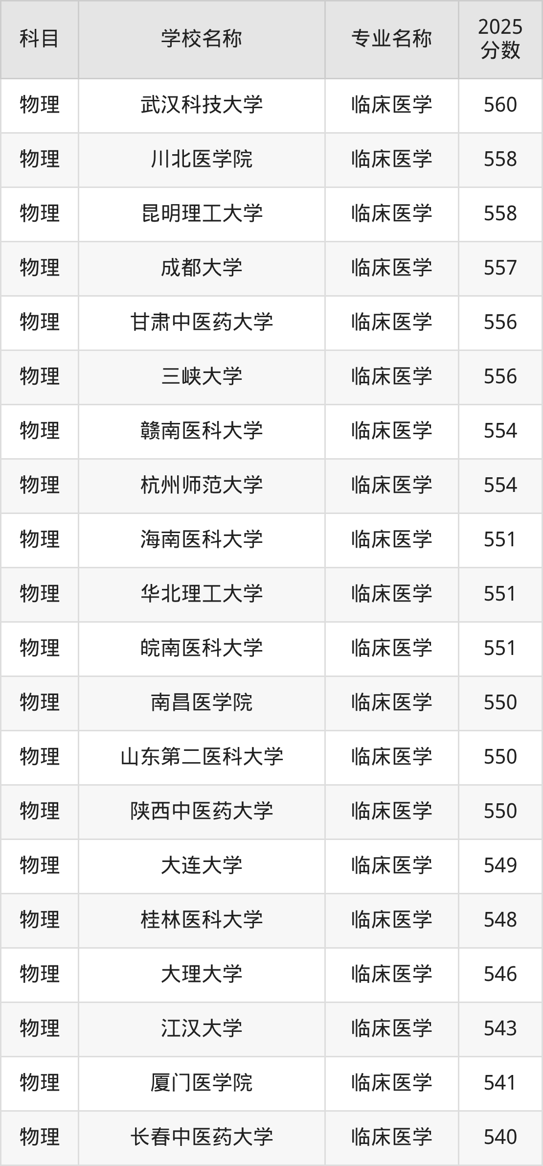 下文将为大家展示贵州省大学临床医学专业2025年在贵州高考的最低录取分数线!