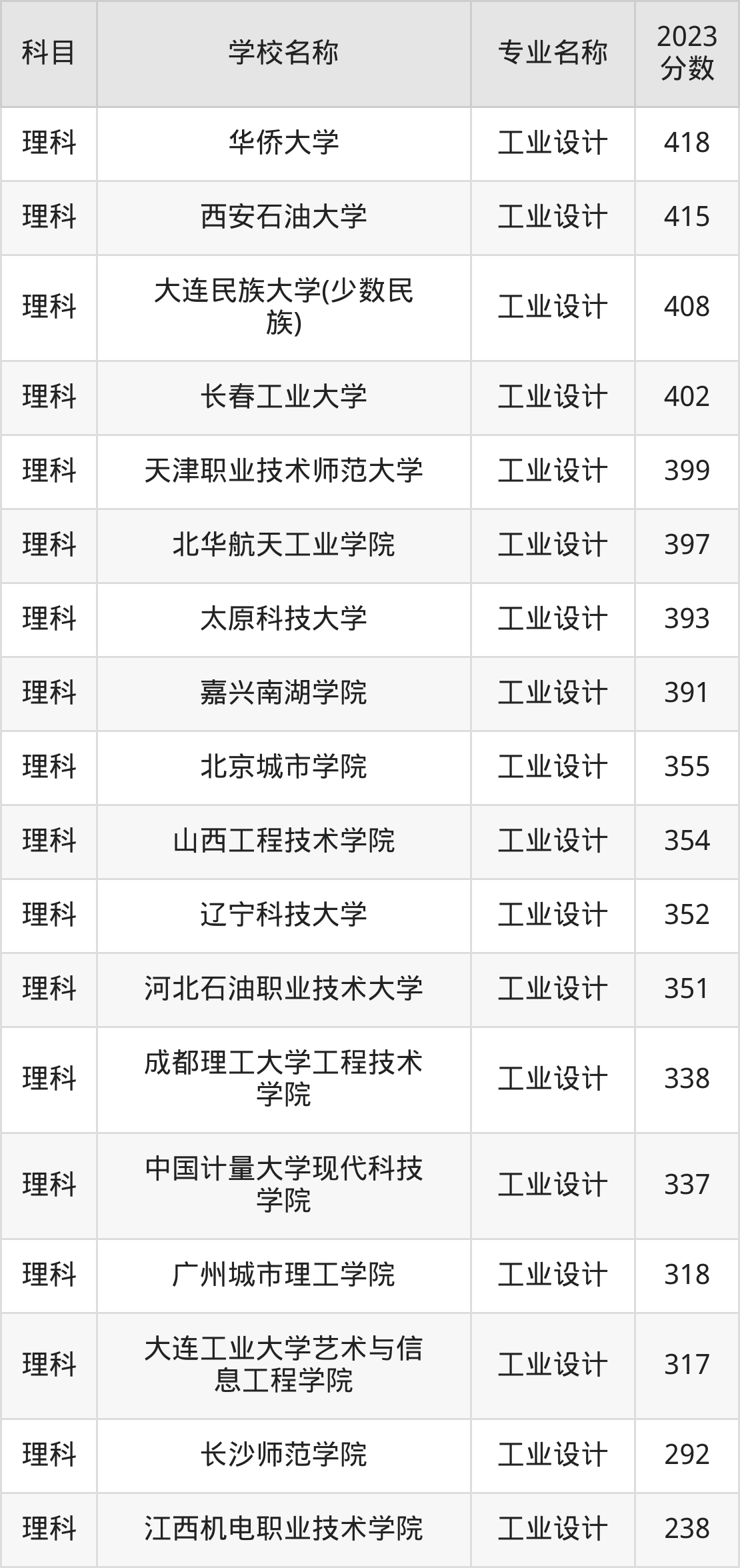 | 哈尔滨理工大学 | 工业设计 | 410 |