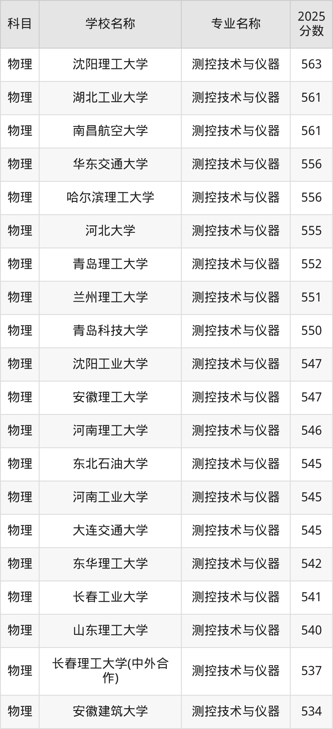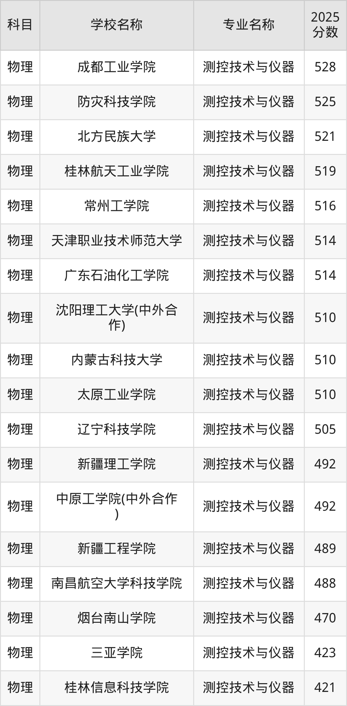 下文将为大家展示重庆市大学测控技术与仪器专业2025年在重庆高考的最低录取分数线!