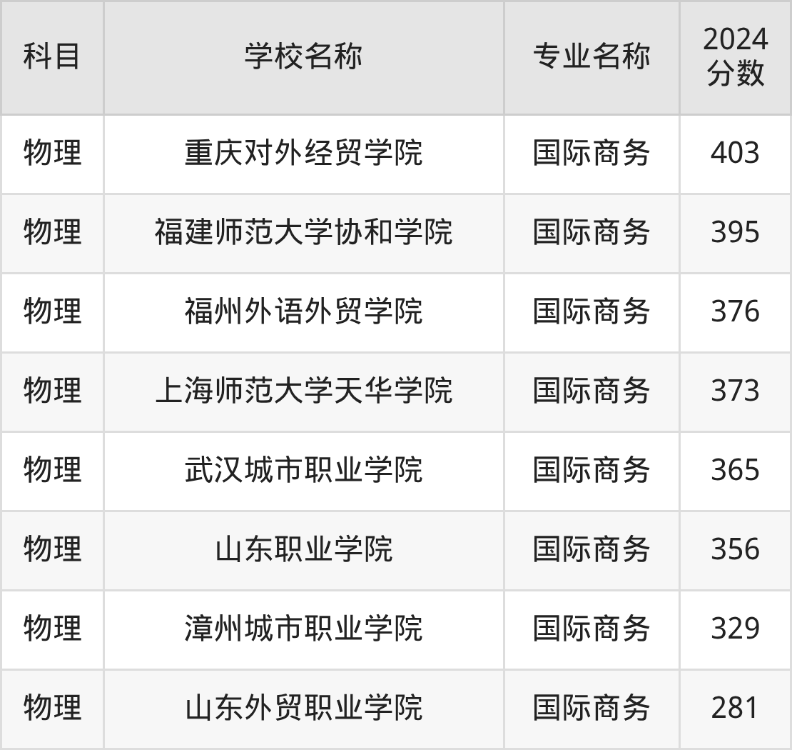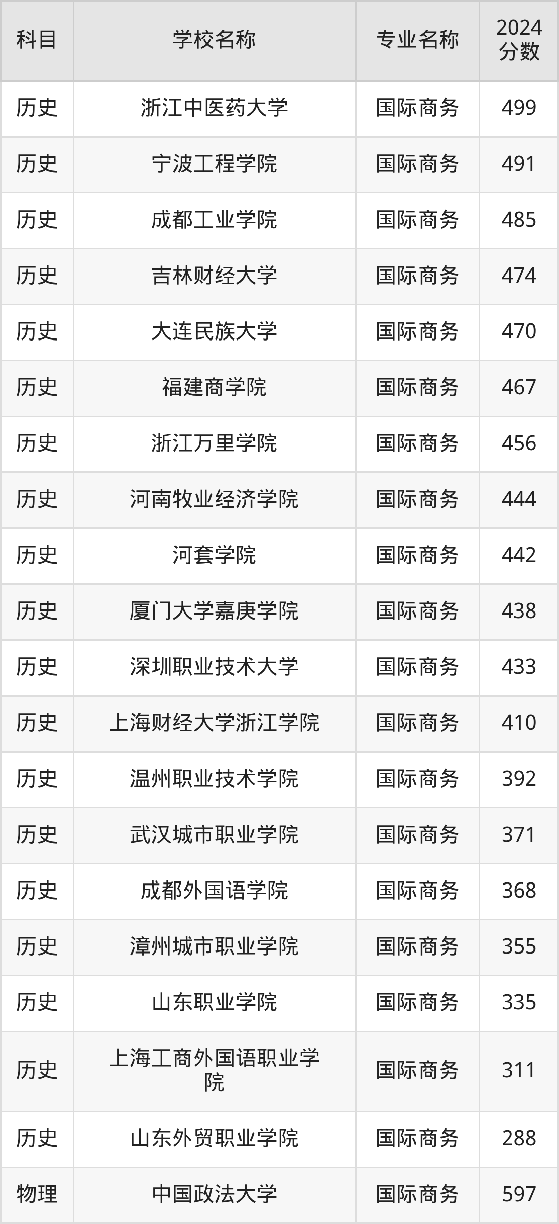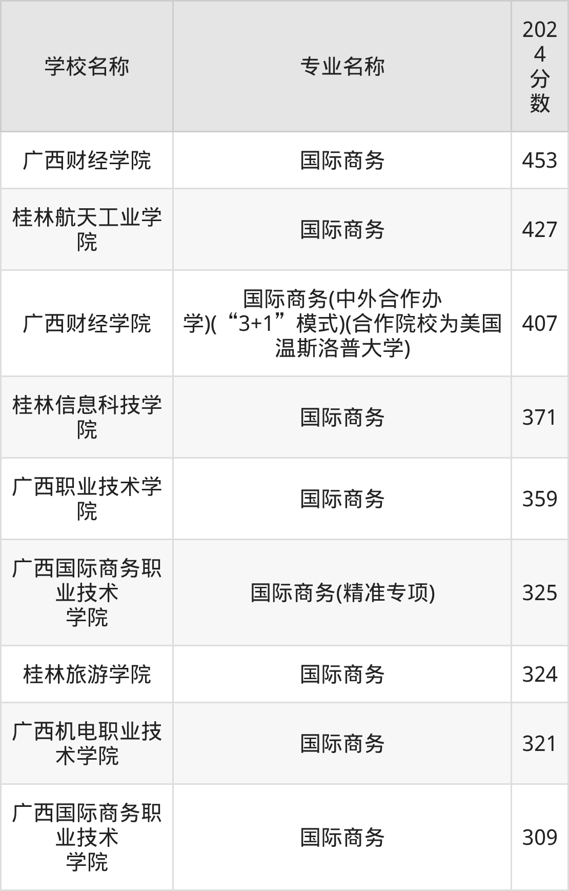 | 广西国际商务职业技术 学院 | 国际商务 | 299 |