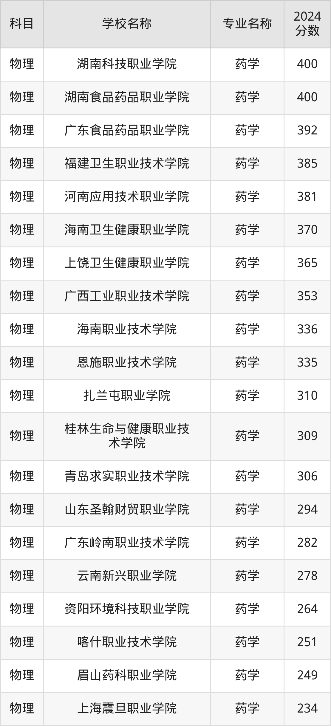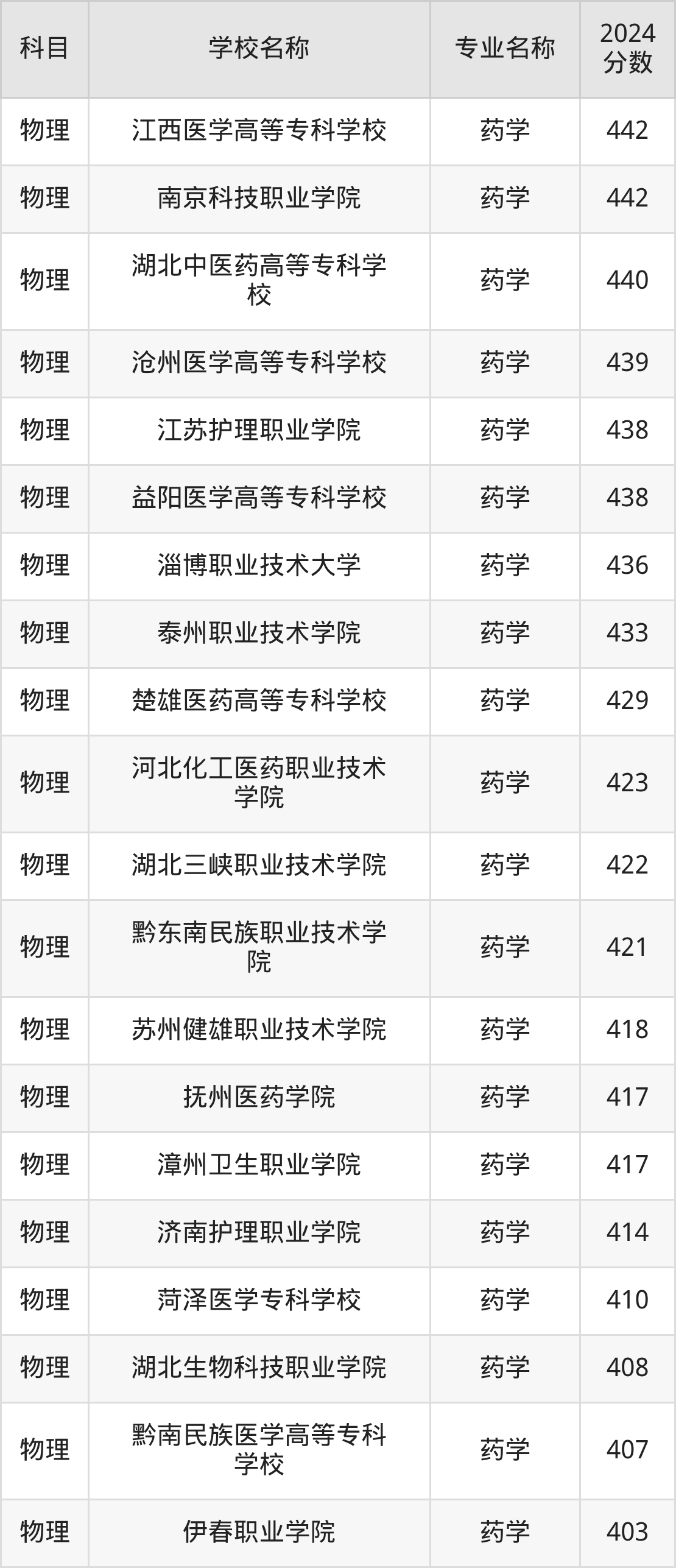| 安庆医药高等专科学校 | 药学 | 413 |