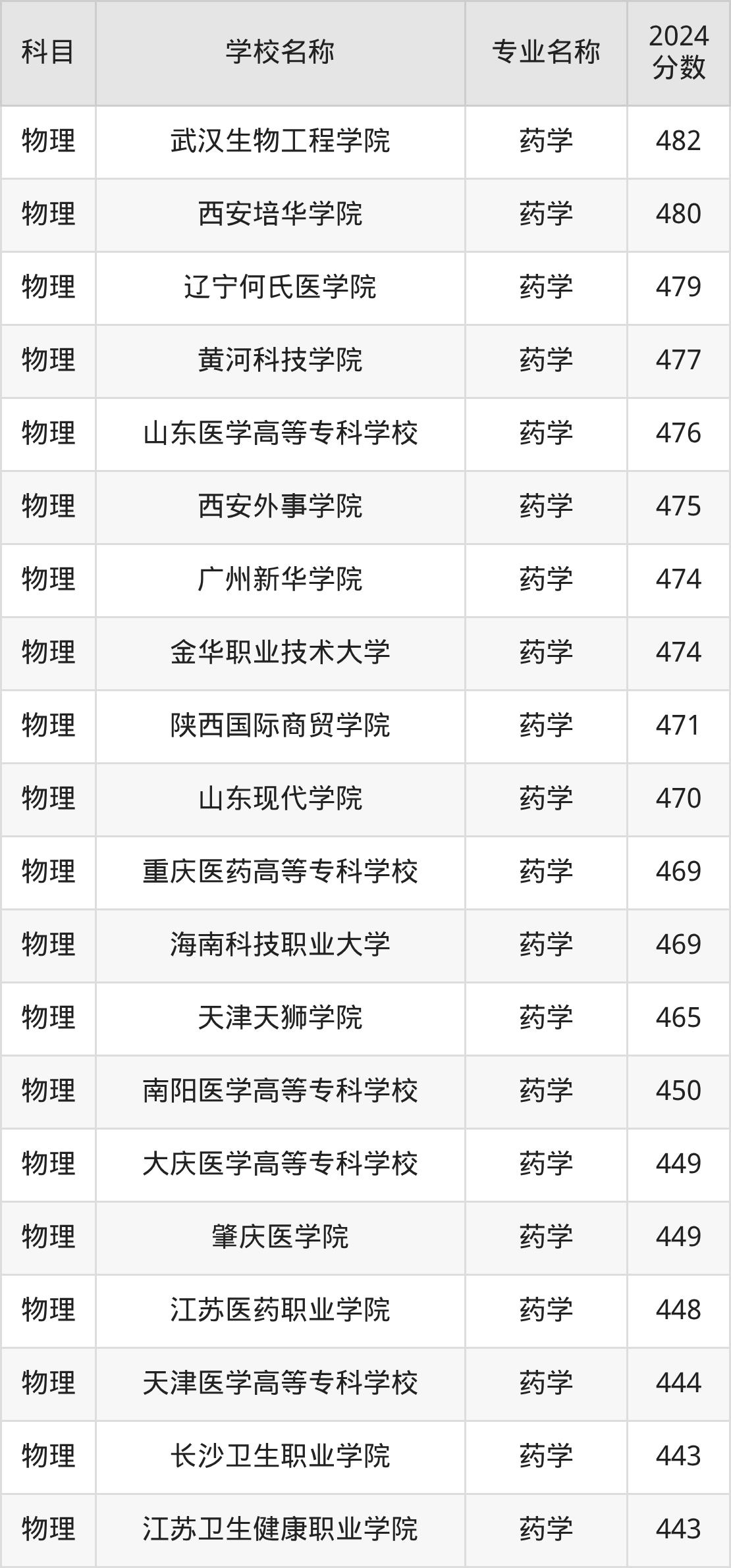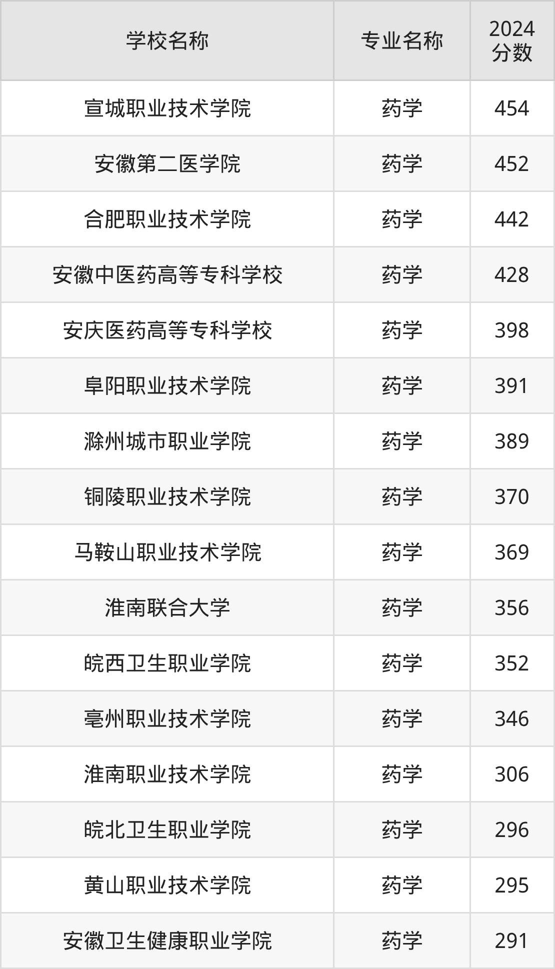 | 安徽中医药高等专科学 校 | 药学 | 441 |