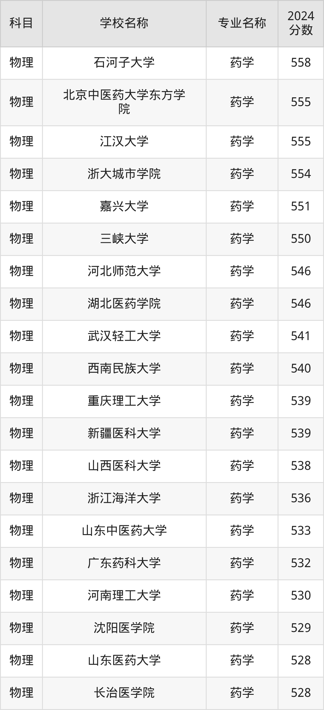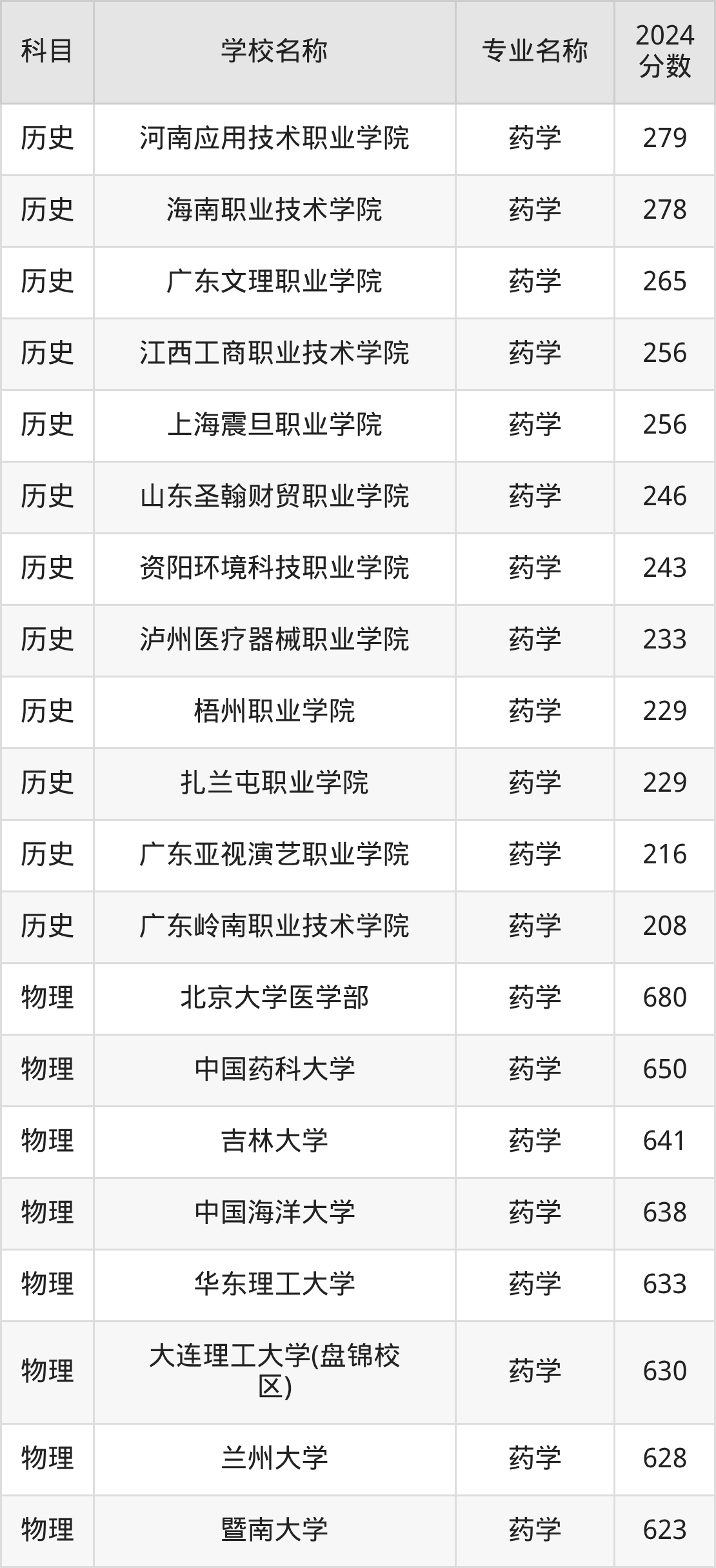 下文将为大家展示安徽省大学药学专业2024年在安徽高考的最低录取分数线!