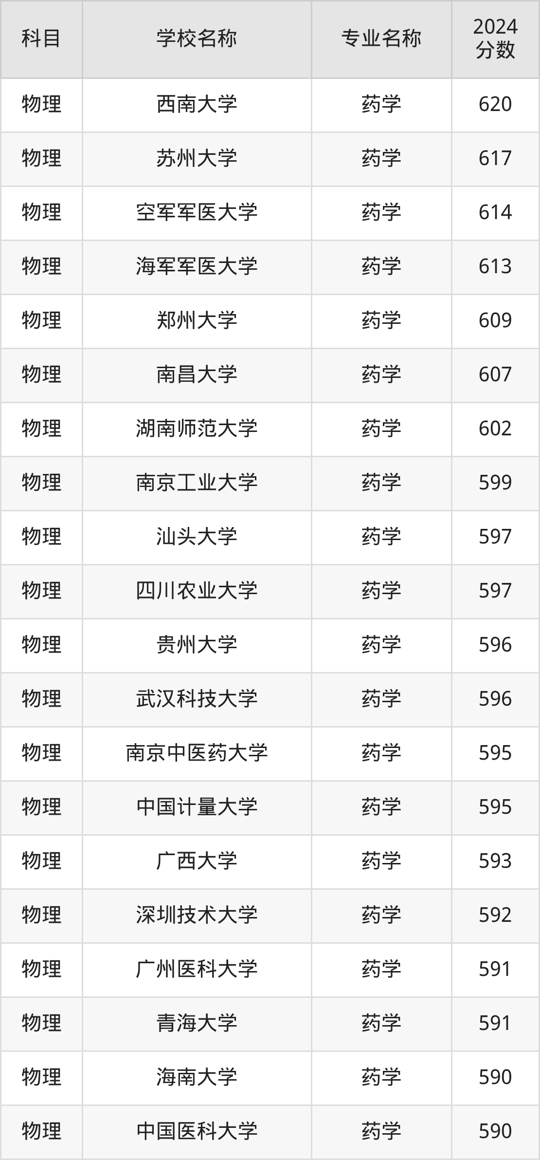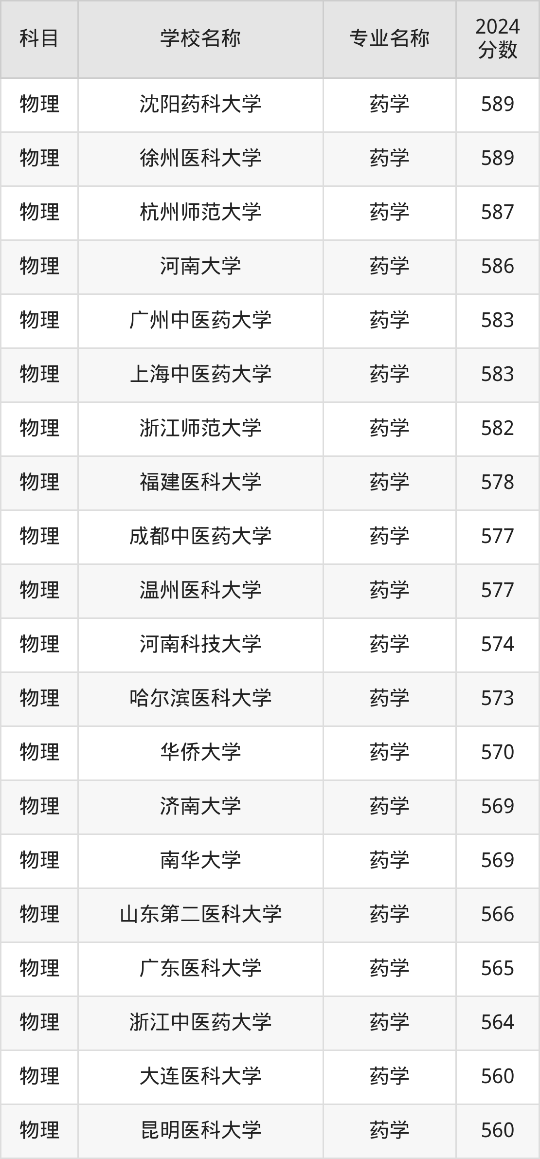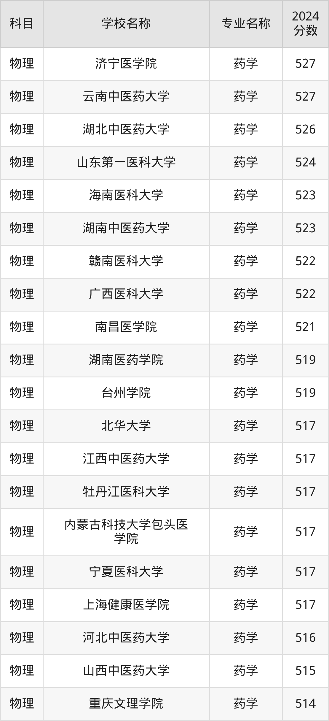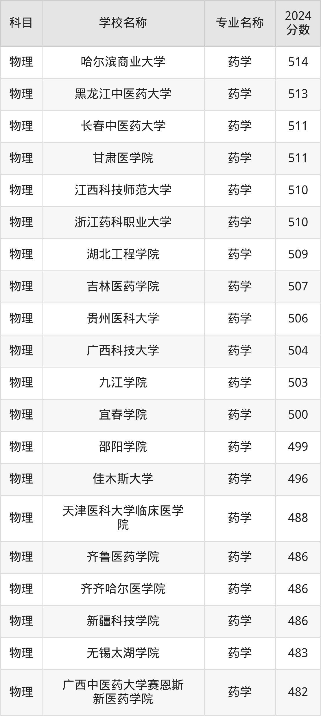 圆梦小编根据安徽2024年高考物理组专业分,将开设了药学专业且位于安徽省内的大学按照“录取分”从高到低排序,得出了以上榜单。