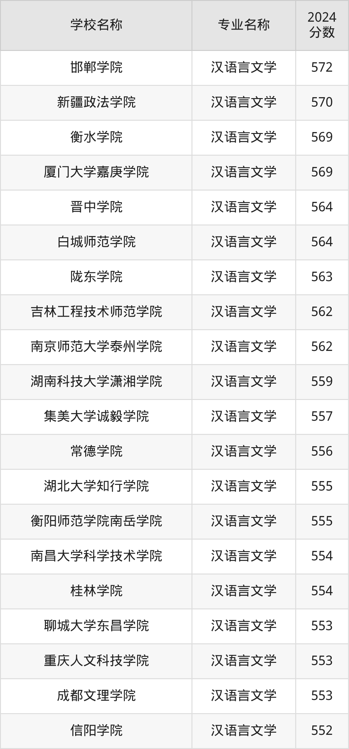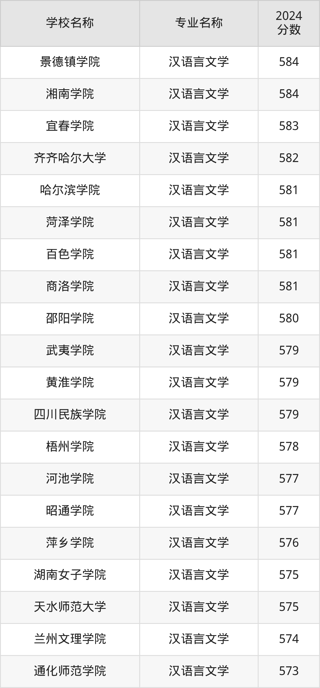 | 琼台师范学院 | 汉语言文学(师 范类) | 583 |