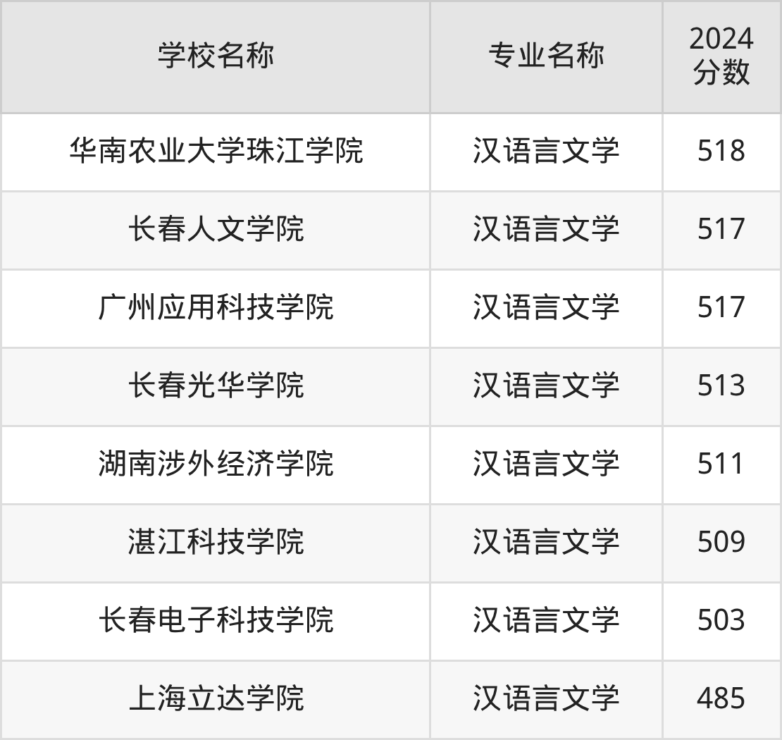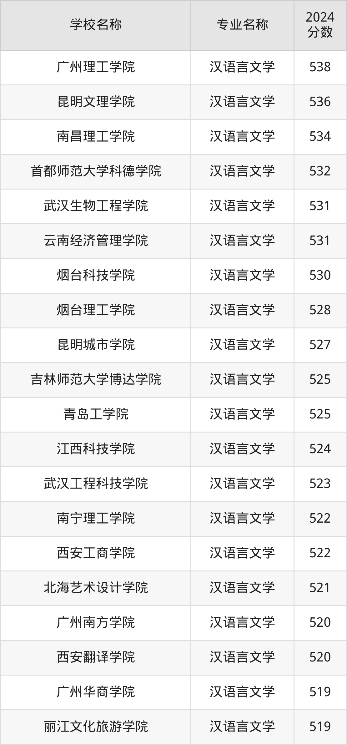 下文将为大家展示海南省大学汉语言文学专业2024年在海南高考的最低录取分数线!