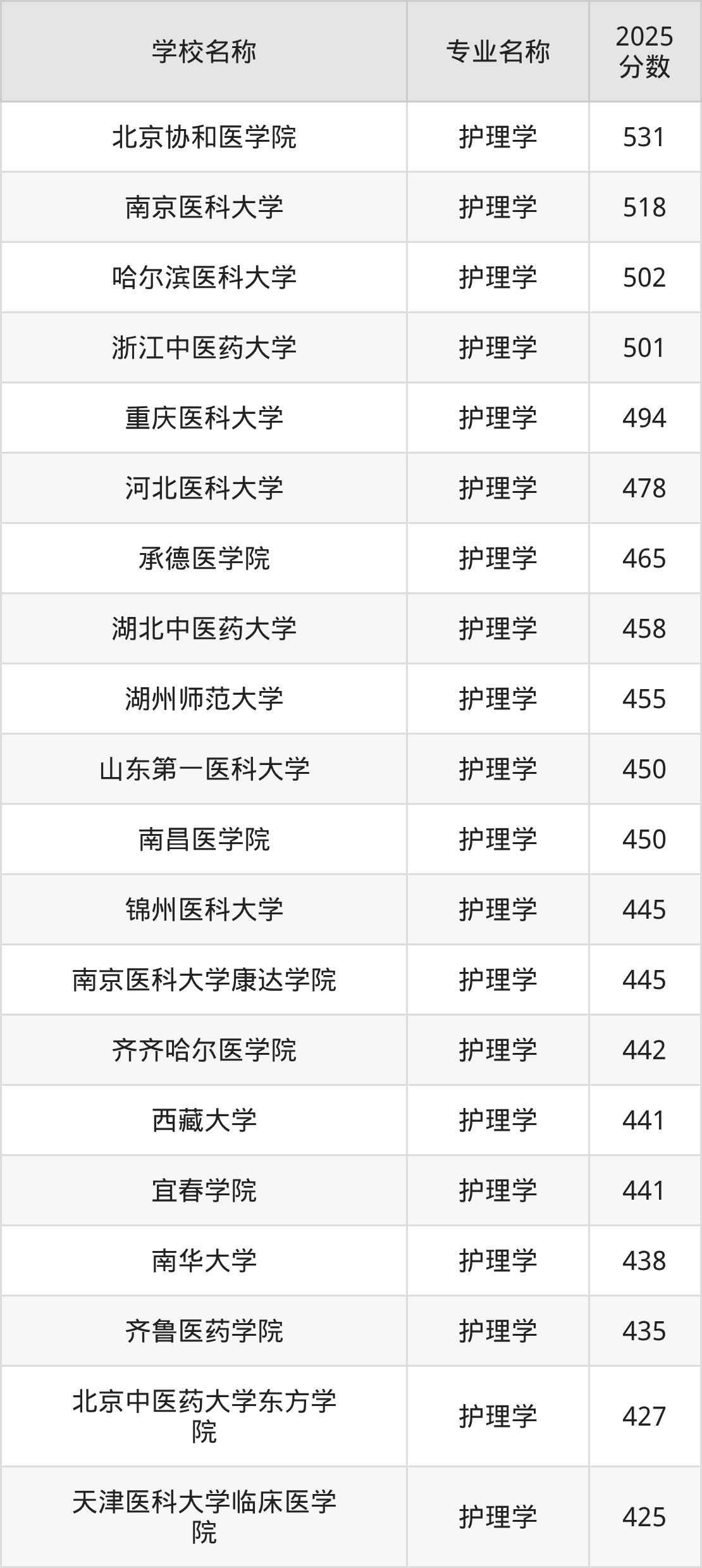 | 上海健康医学院 | 护理学 | 465 |