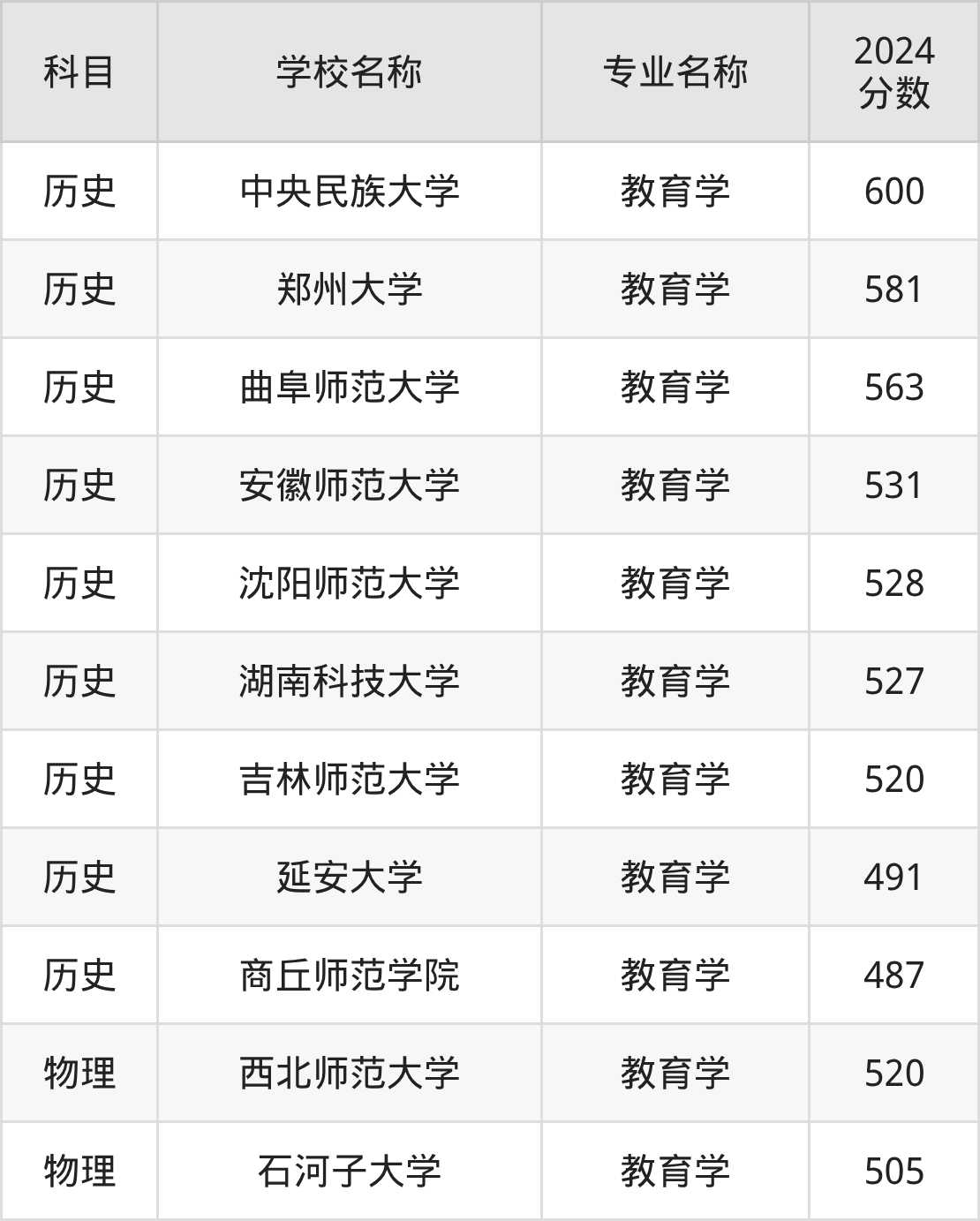 圆梦小编根据黑龙江2024年高考历史组专业分,将开设了教育学专业且位于黑龙江省内的大学按照“录取分”从高到低排序,得出了以上榜单。