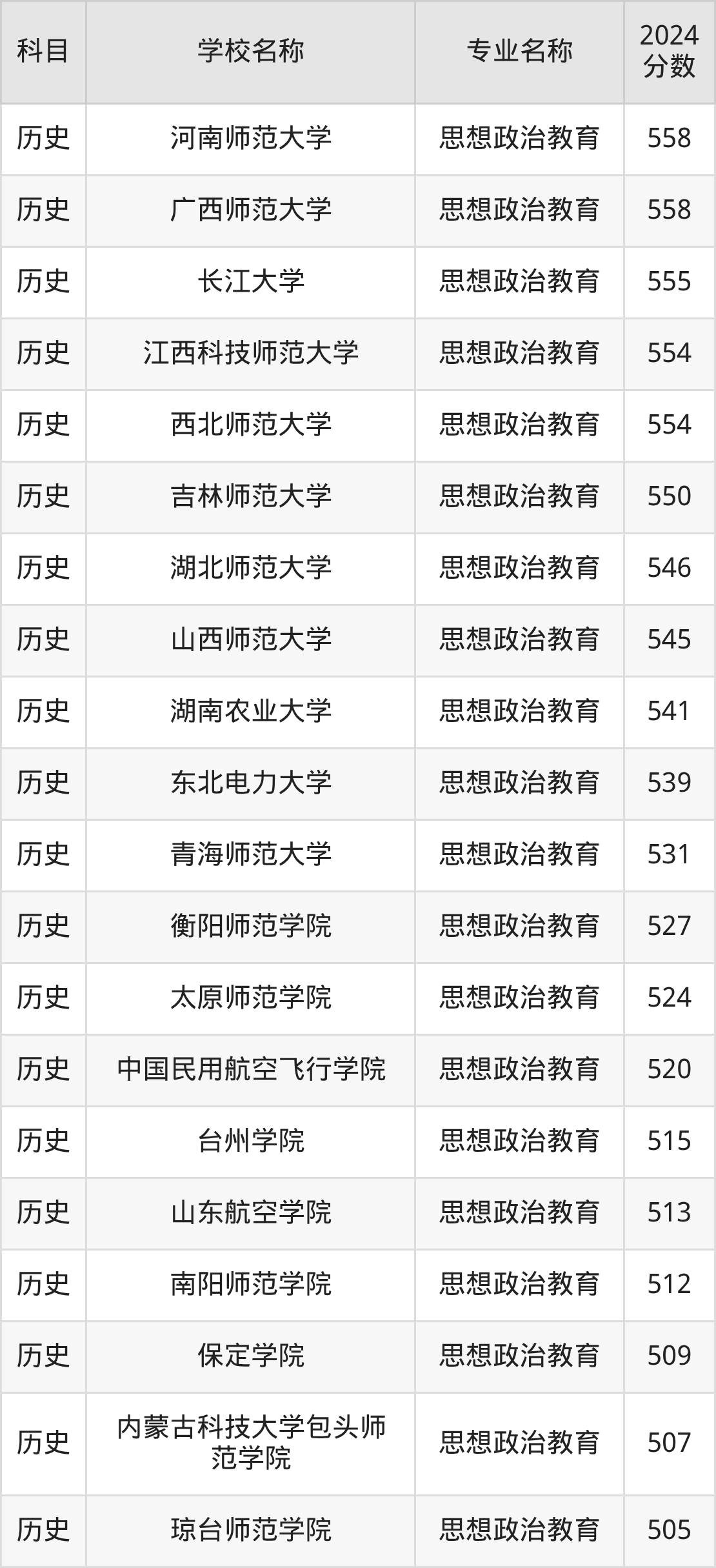 | 哈尔滨师范大学 | 思想政治教育( 师范类) | 557 |