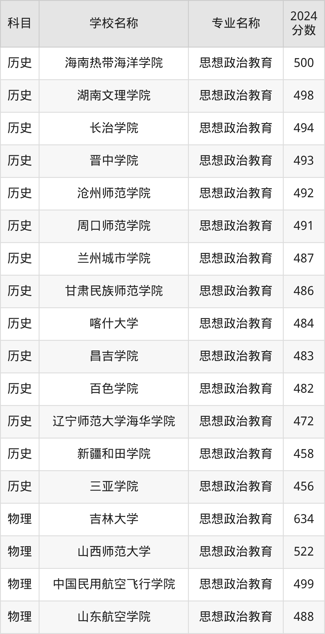 | 哈尔滨学院 | 思想政治教育( 师范类) | 504 |