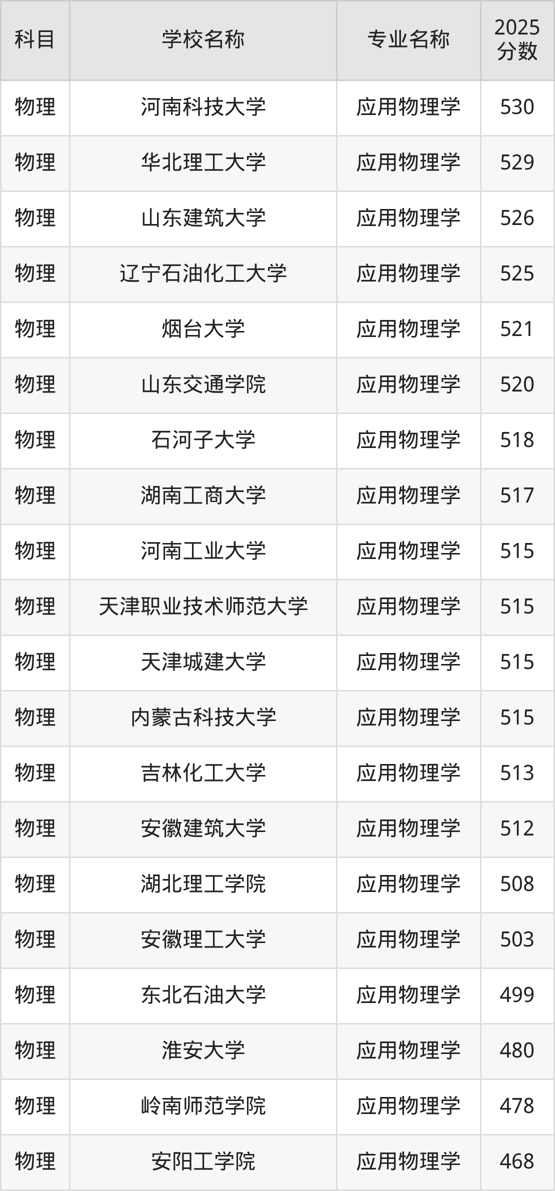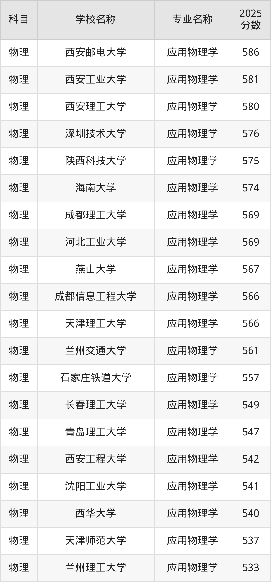 根据软科2025年专业榜单可知,开设应用物理学专业且位于山西省内的大学排名如下。