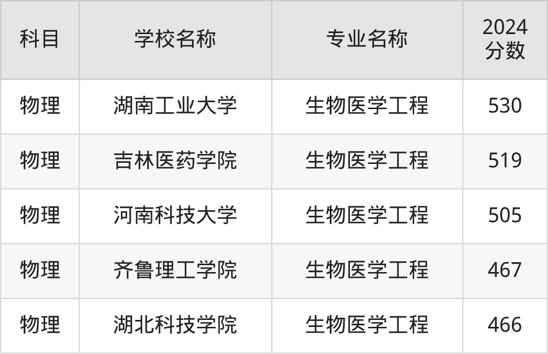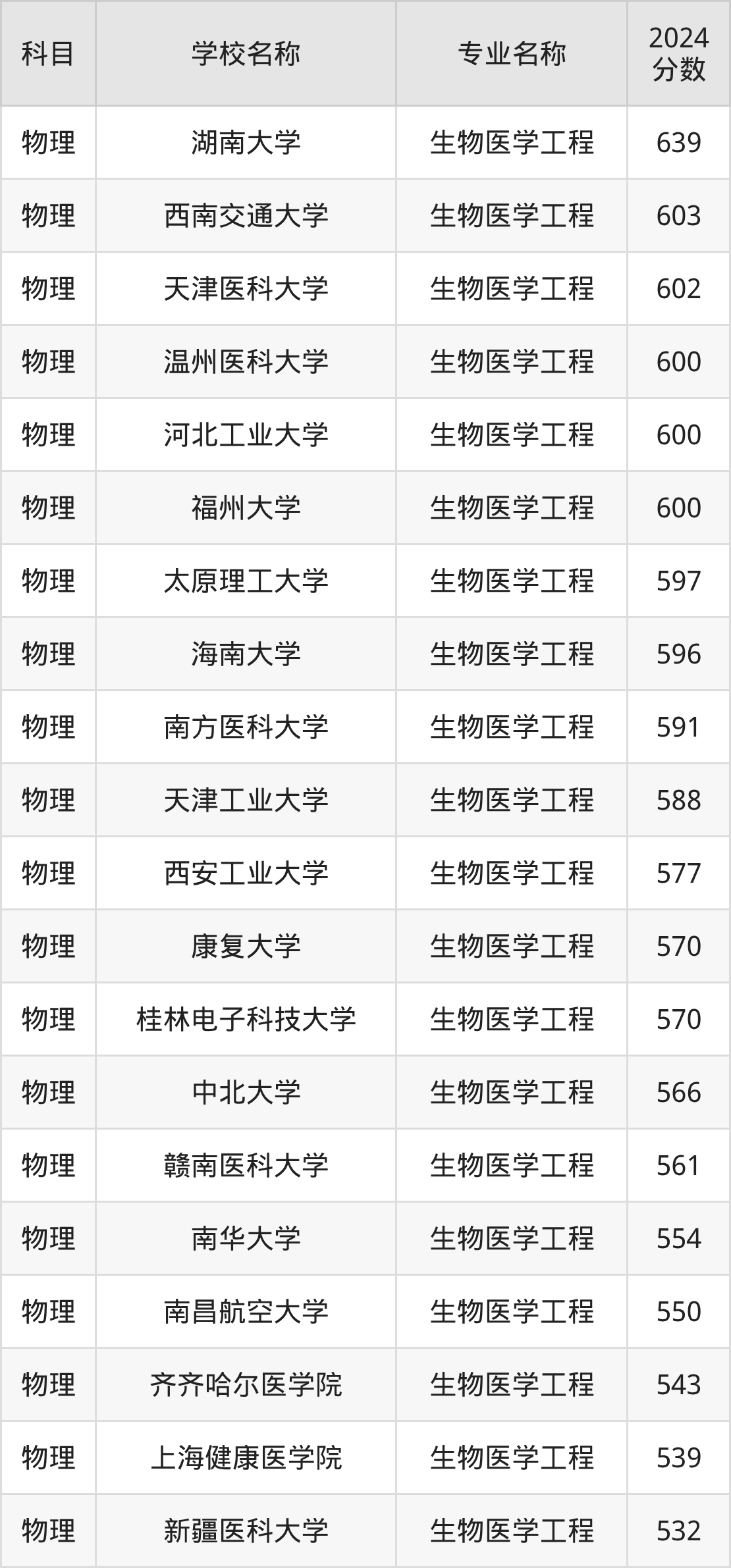 通过上文大家可以知晓,在江苏省内招生物医学工程专业的院校数量较少,所以下文将为2026届高考生继续展示:省外大学的生物医学工程专业2024年在江苏高考的录取情况,包含湖南大学、西南交通大学、天津医科大学、温州医科大学、河北工业大学。