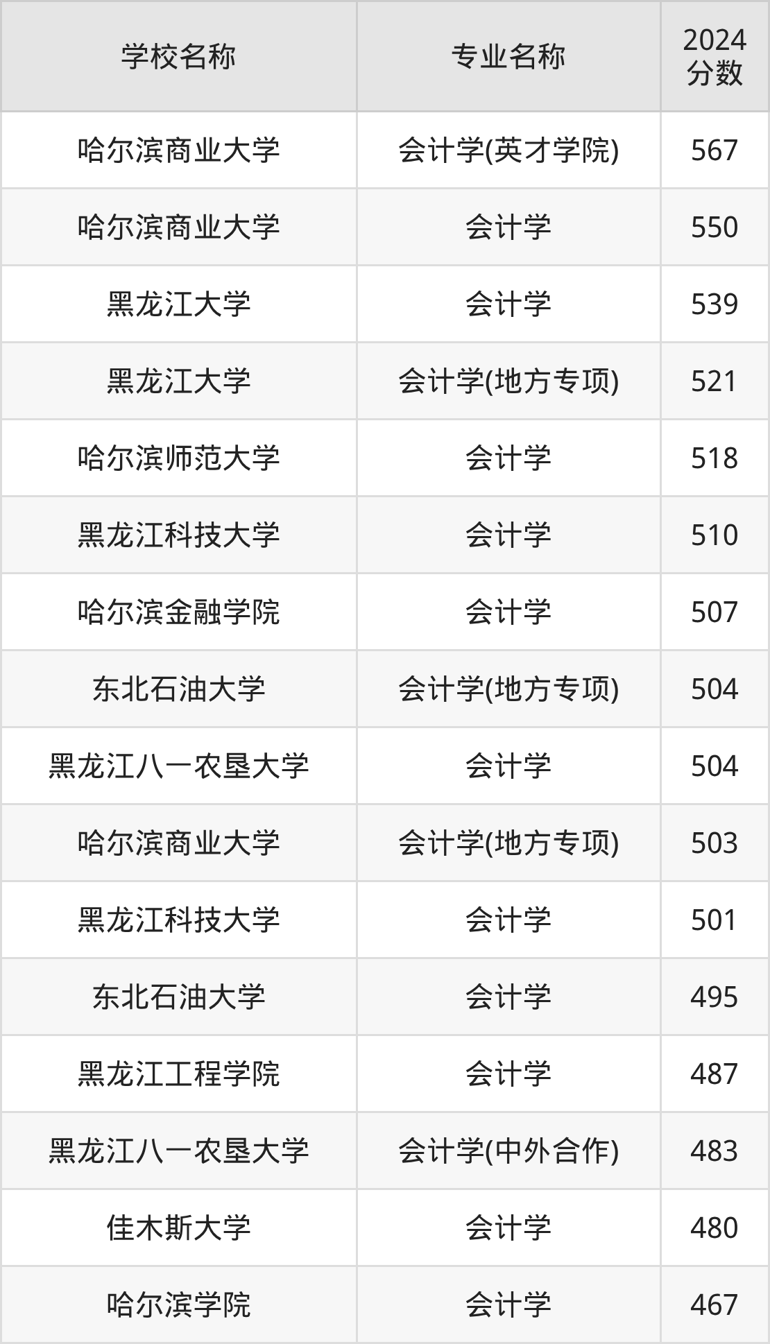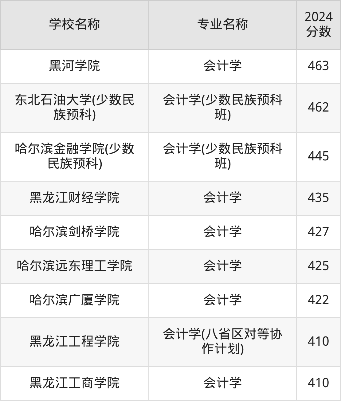 下文将为大家展示黑龙江省大学会计学专业2024年在黑龙江高考的最低录取分数线!