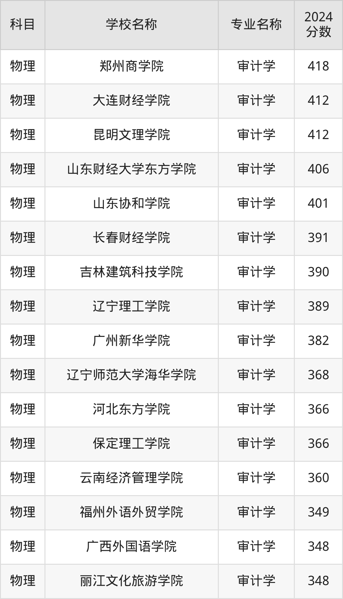 | 哈尔滨广厦学院 | 审计学 | 416 |