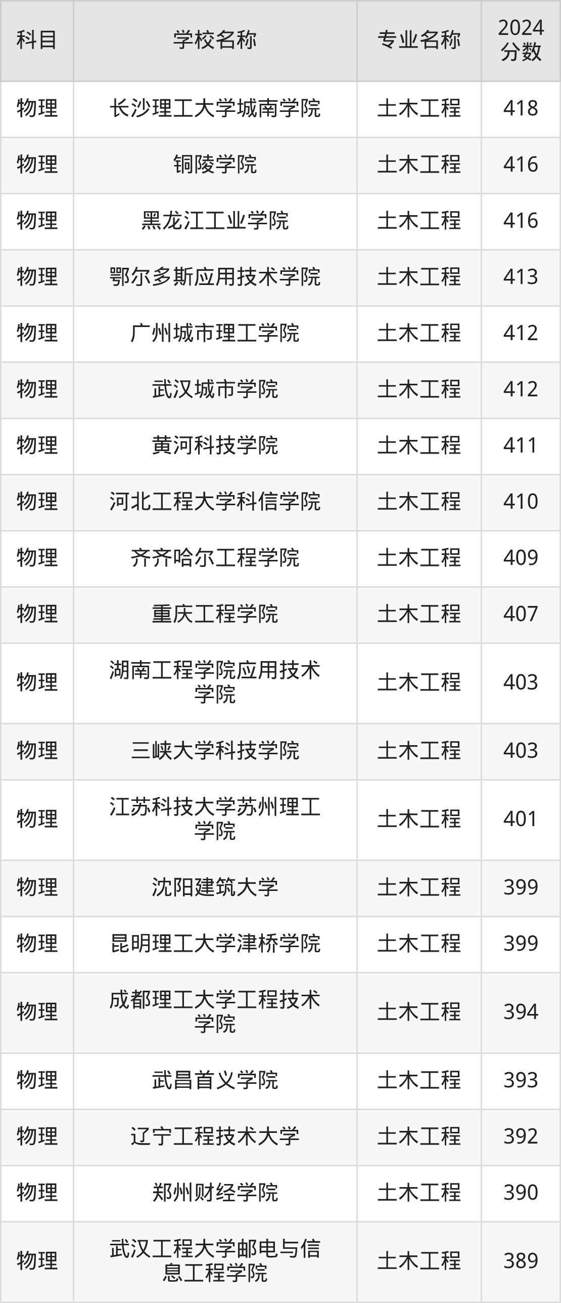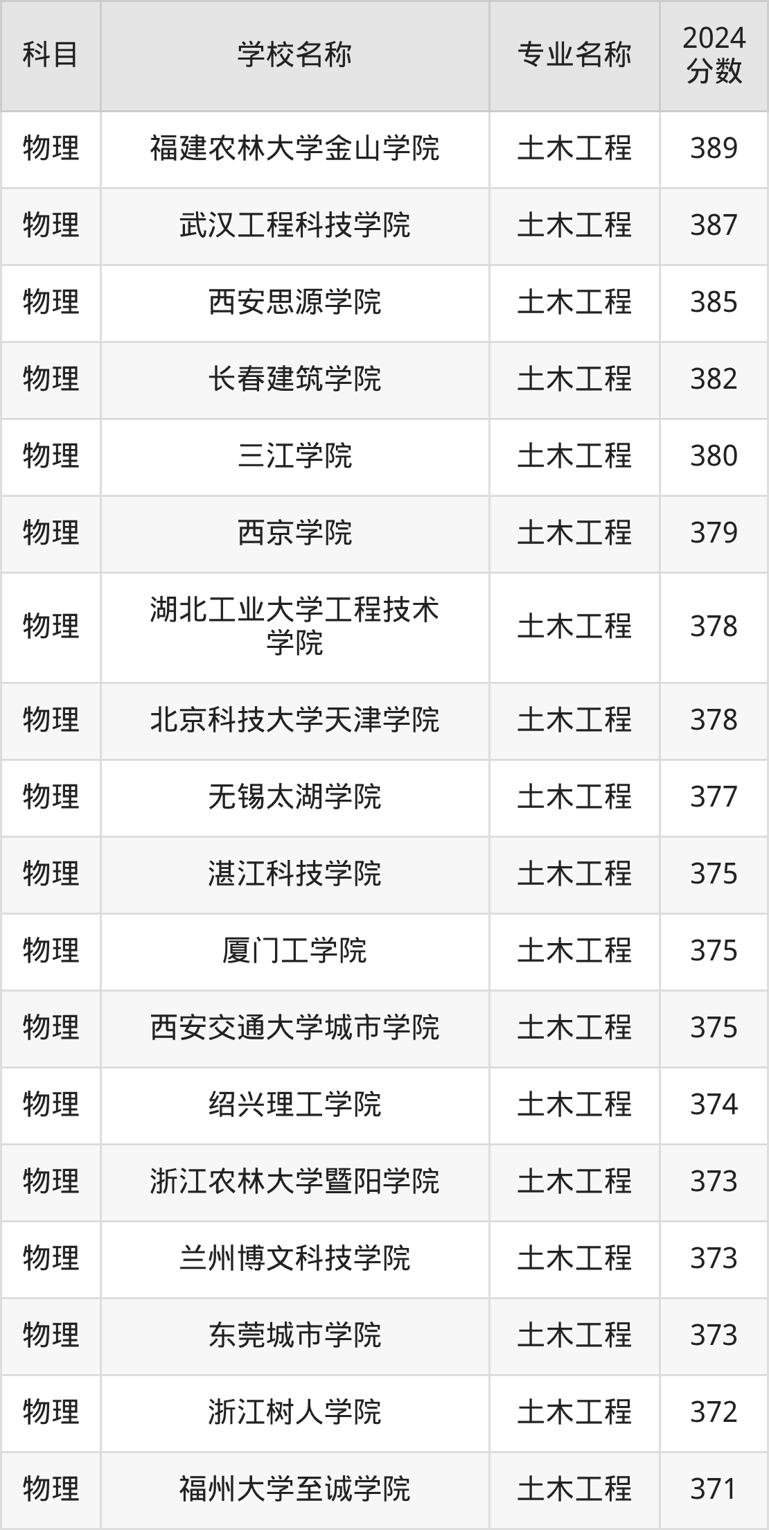 广西高考物理组:土木工程专业的最低分是371分~580分