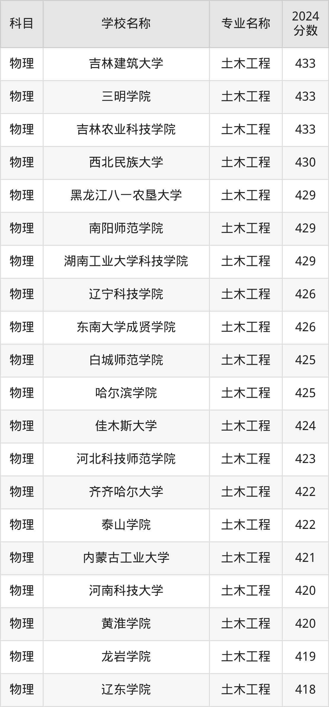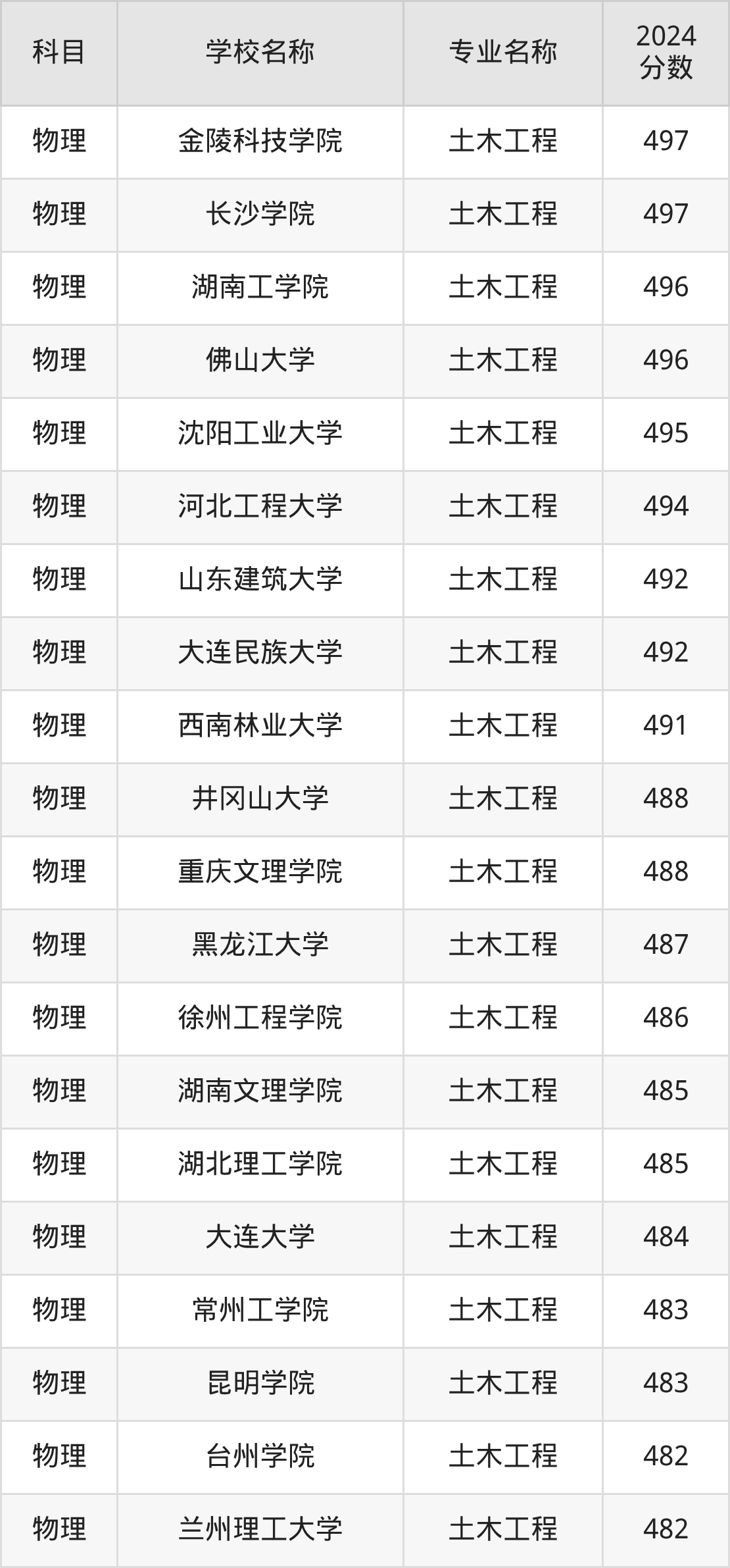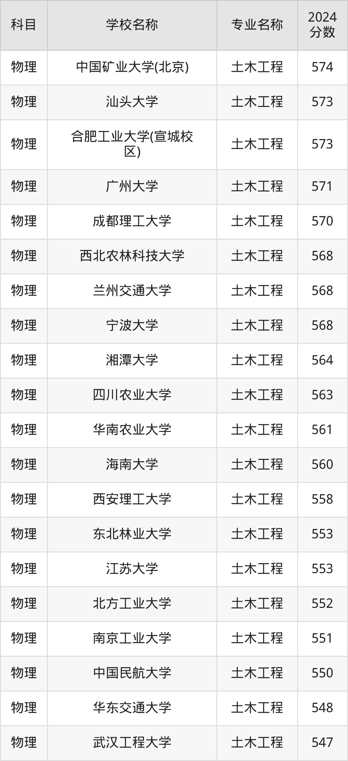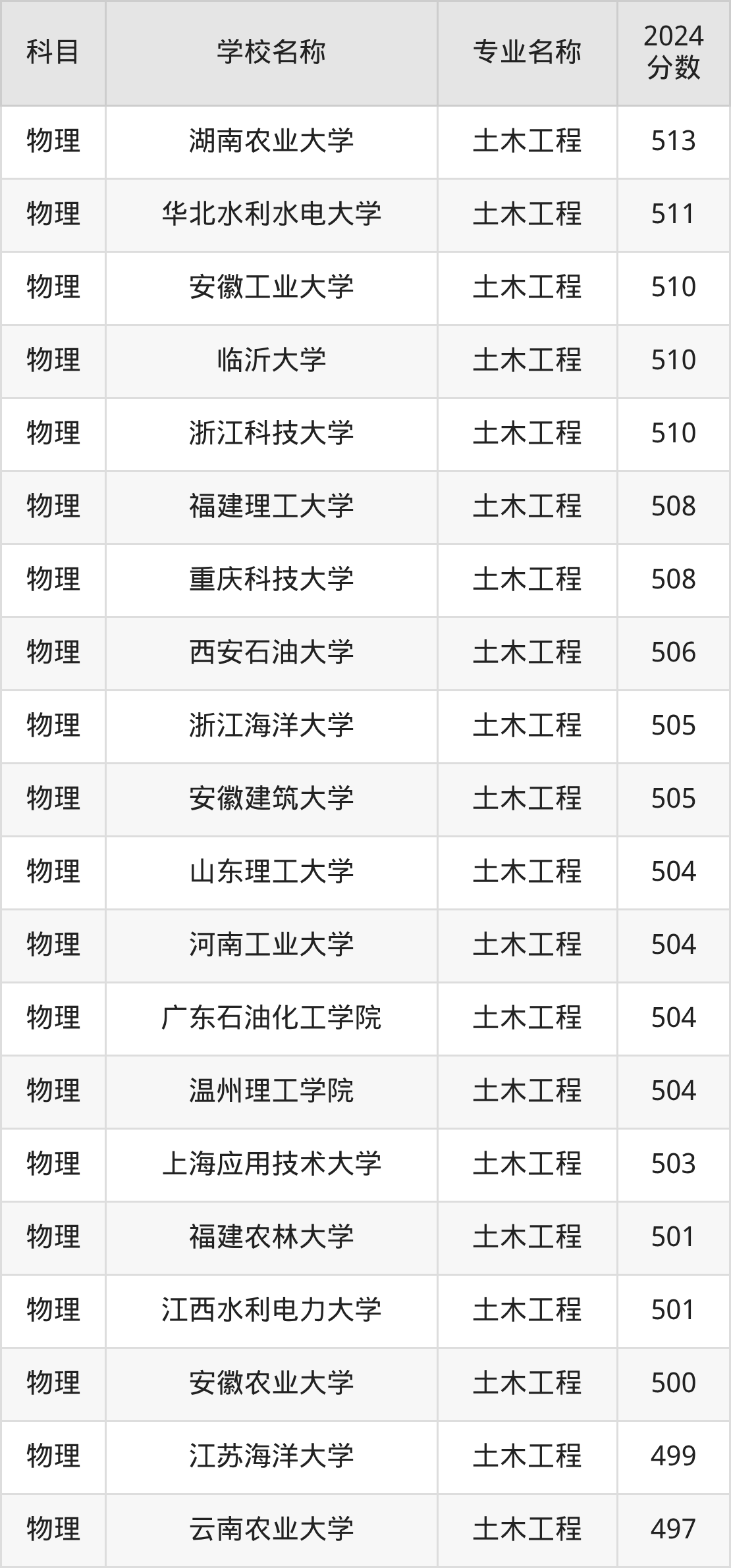 下文将为大家展示广西壮族自治区大学土木工程专业2024年在广西高考的最低录取分数线!