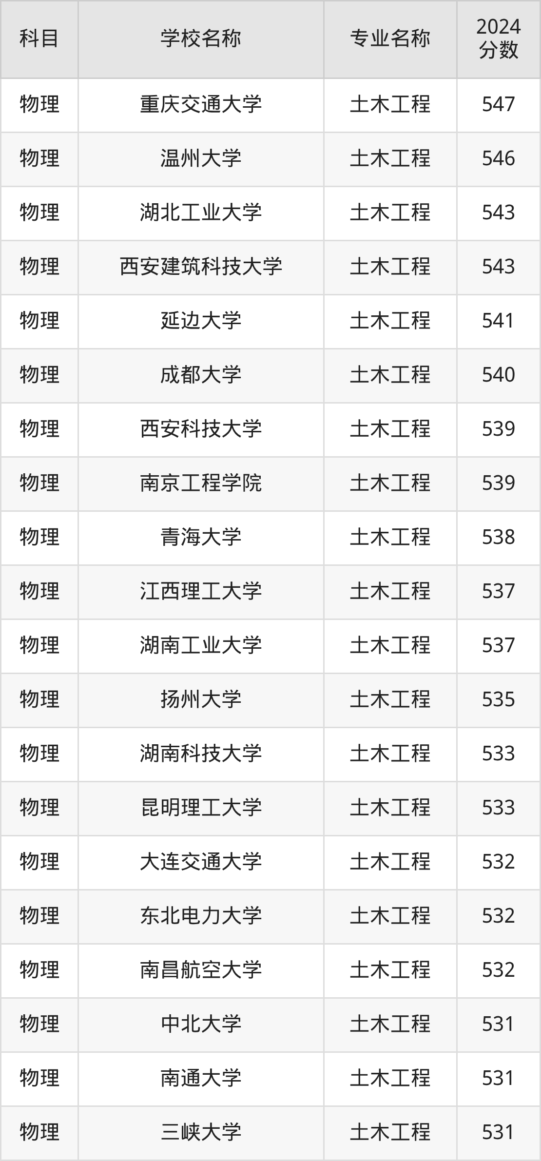 | 桂林理工大学 | 土木工程(地方 专项计划) | 525 |