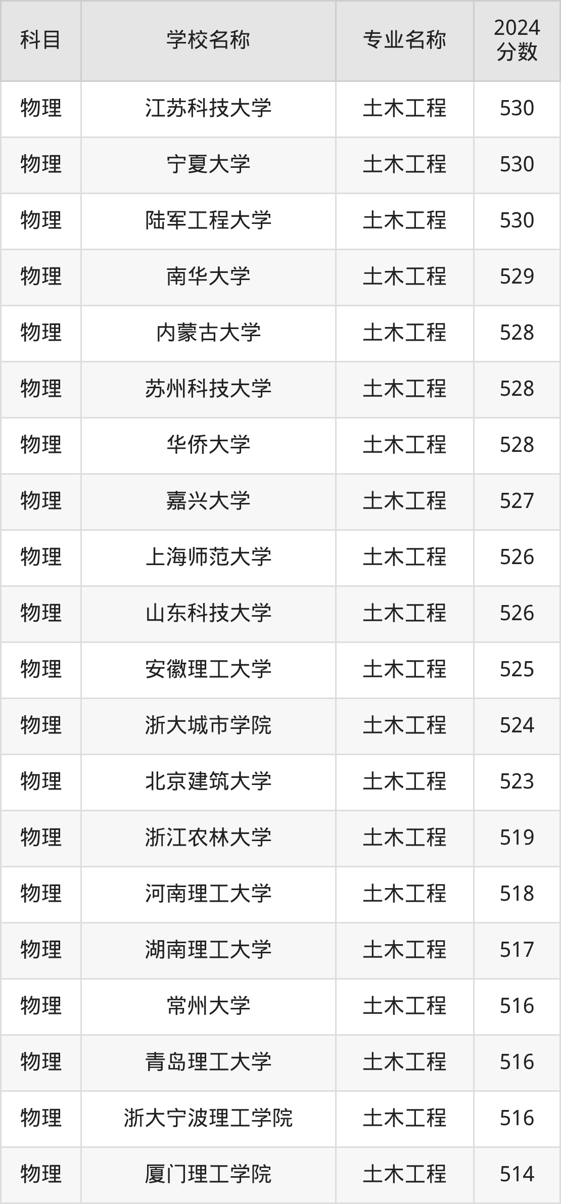 圆梦小编根据广西2024年高考物理组专业分,将开设了土木工程专业且位于广西壮族自治区内的大学按照“录取分”从高到低排序,得出了以上榜单。