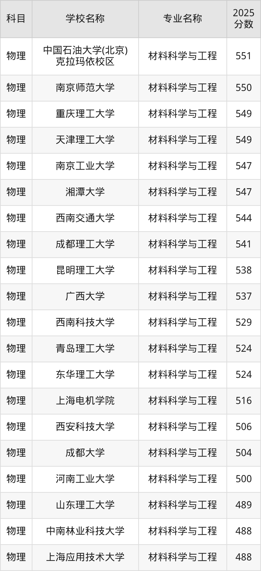 圆梦小编根据吉林2025年高考物理组专业分,将开设了材料科学与工程专业且位于吉林省内的大学按照“录取分”从高到低排序,得出了以上榜单。
