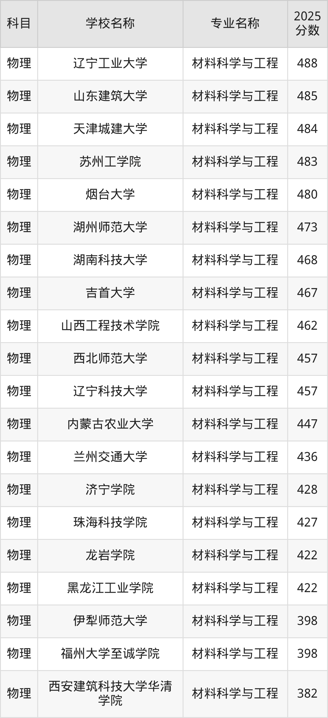 | 学校名称 | 专业名称 | 2025 分数 |