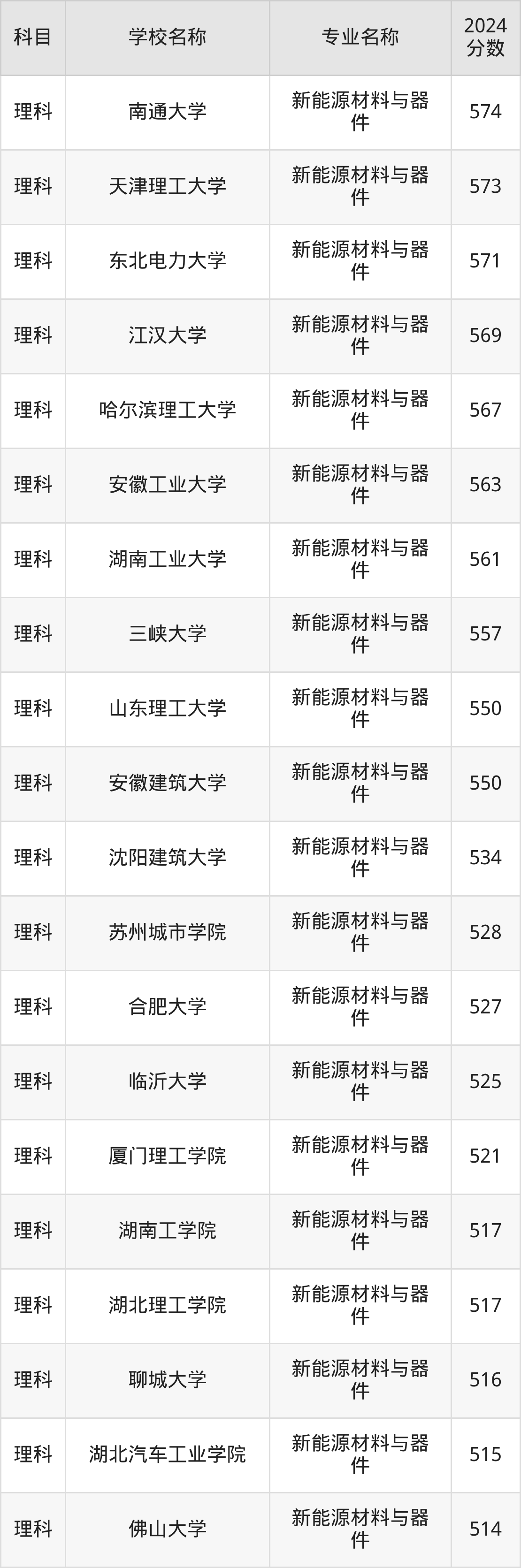 | 河南理工大学 | 新能源材料与器 件 | 545 |