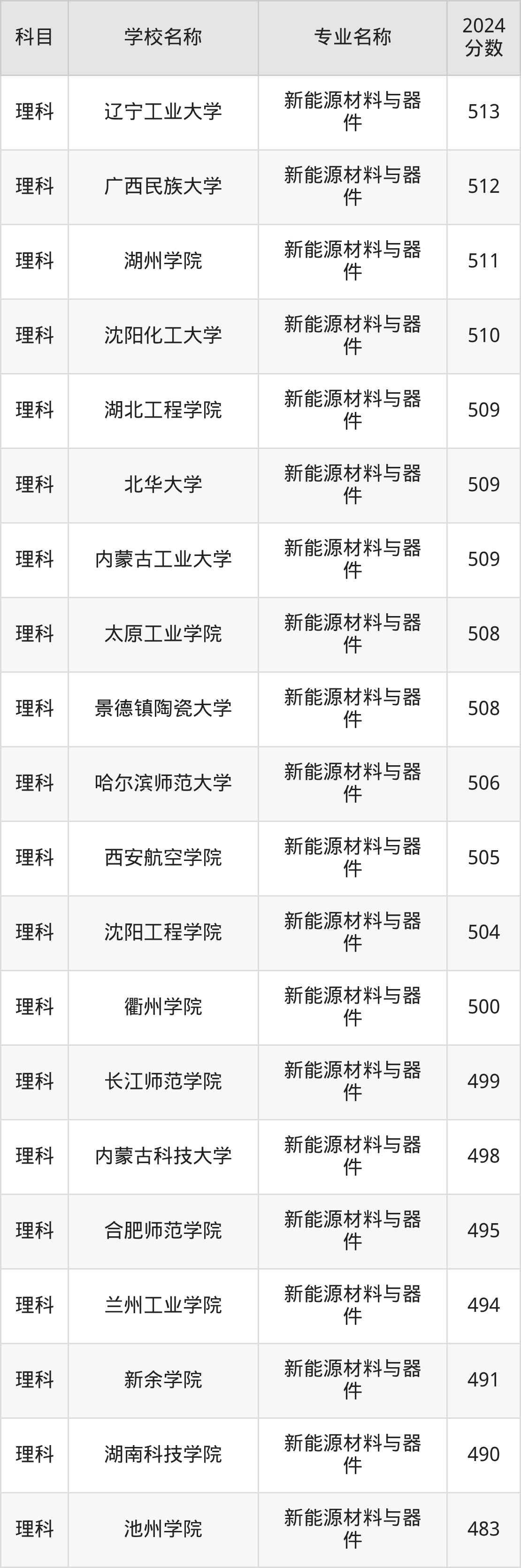 | 安阳工学院 | 新能源材料与器 件 | 485 |