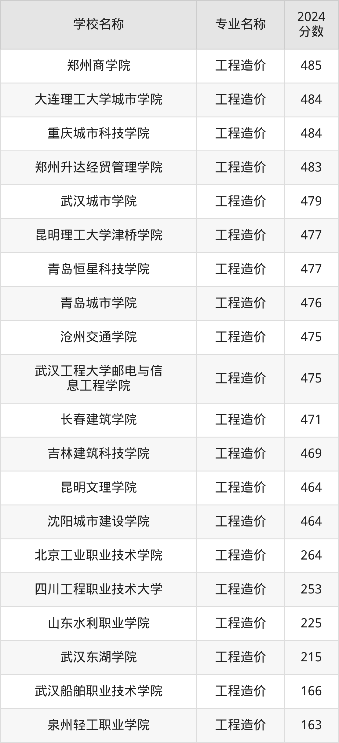 圆梦小编根据天津2024年高考专业分,将开设了工程造价专业且位于天津市内的大学按照“录取分”从高到低排序,得出了以上榜单。