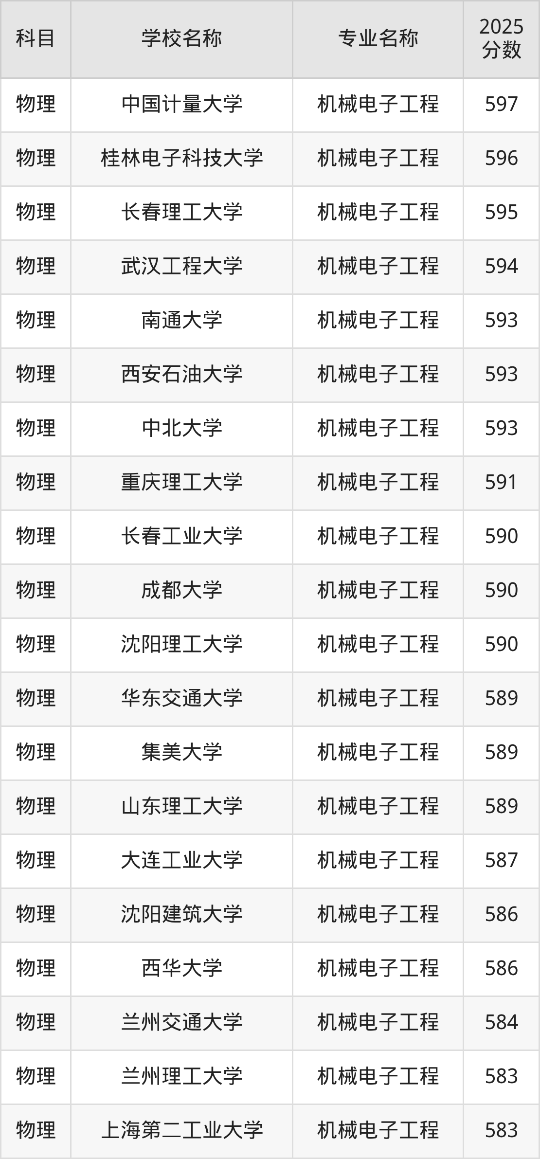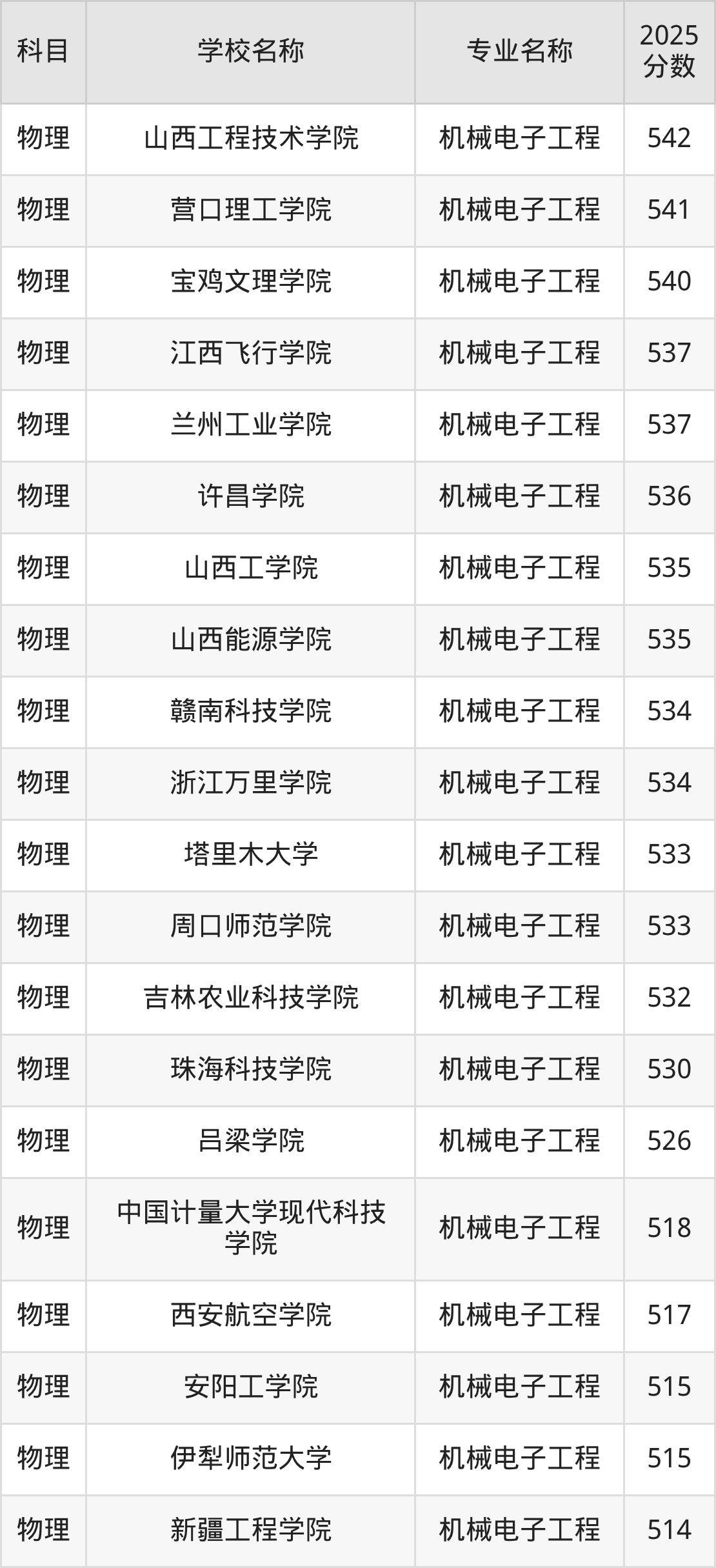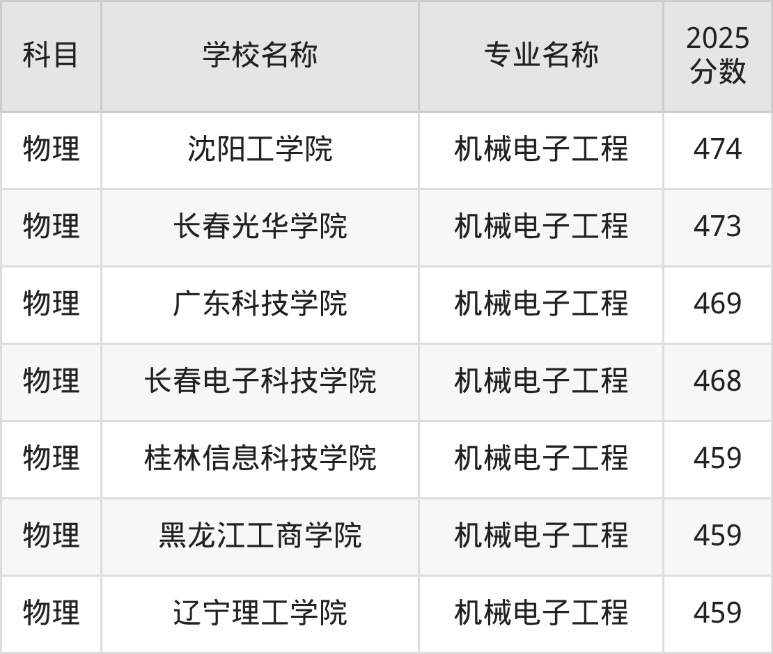 | 学校名称 | 专业名称 | 2025 分数 |