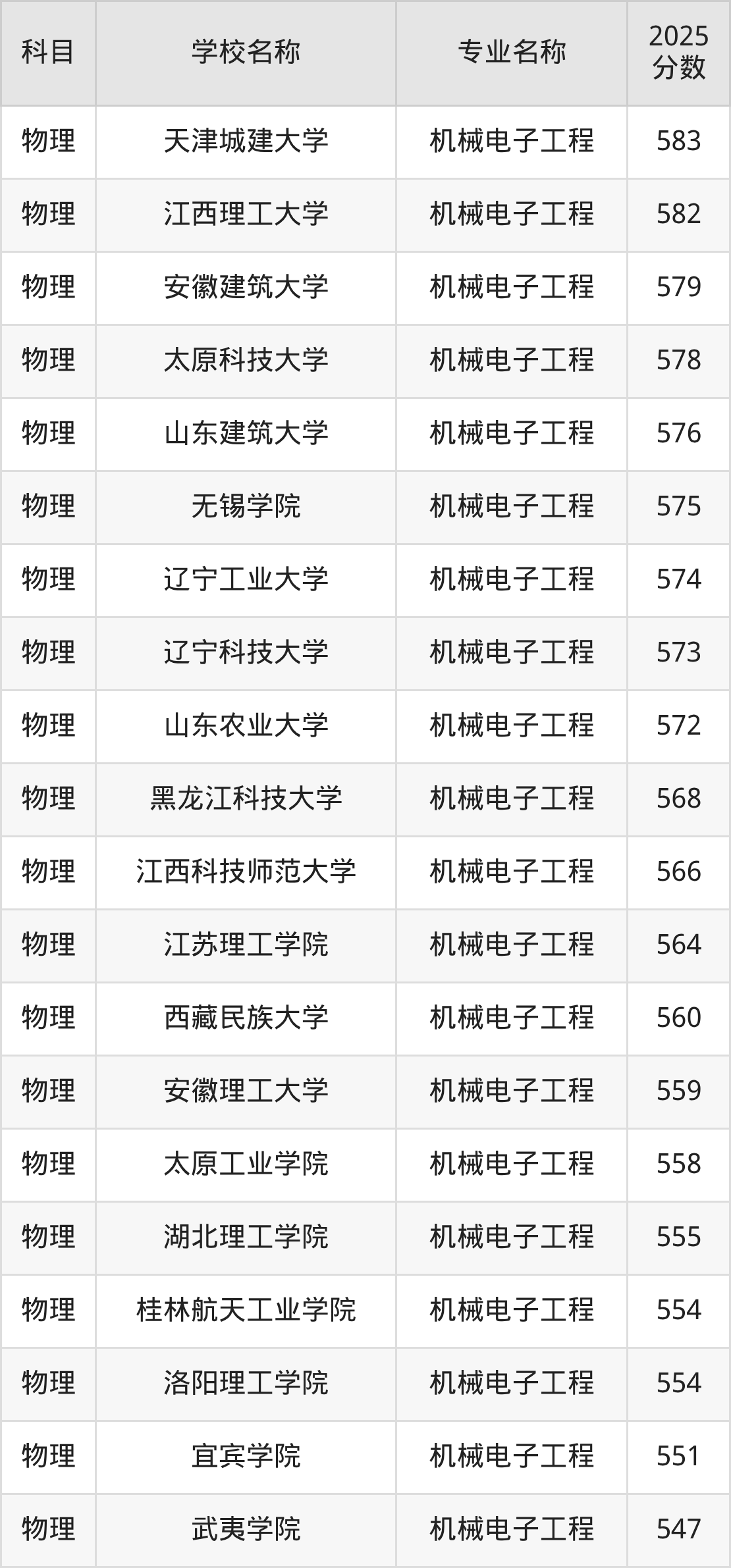 | 河北建筑工程学院 | 机械电子工程 | 533 |