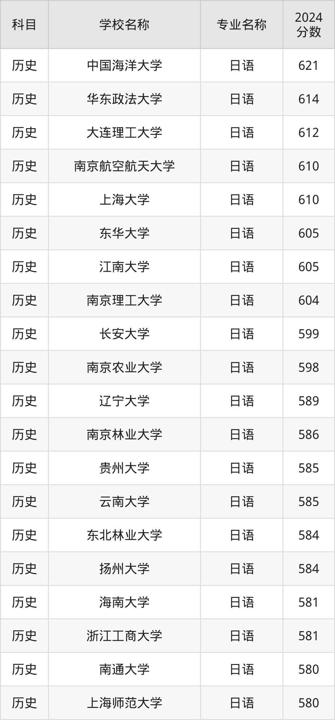 | 安徽大学 | 日语 | 586 |
