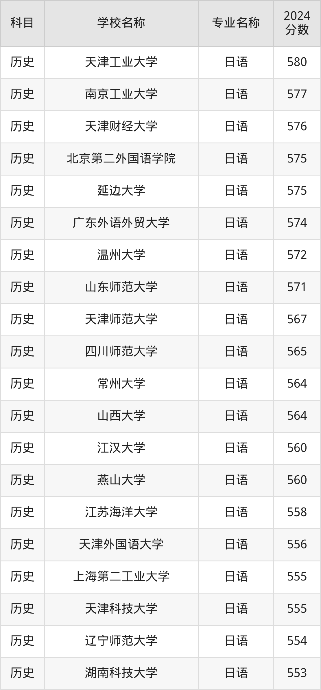 | 淮北师范大学 | 日语 | 525 |