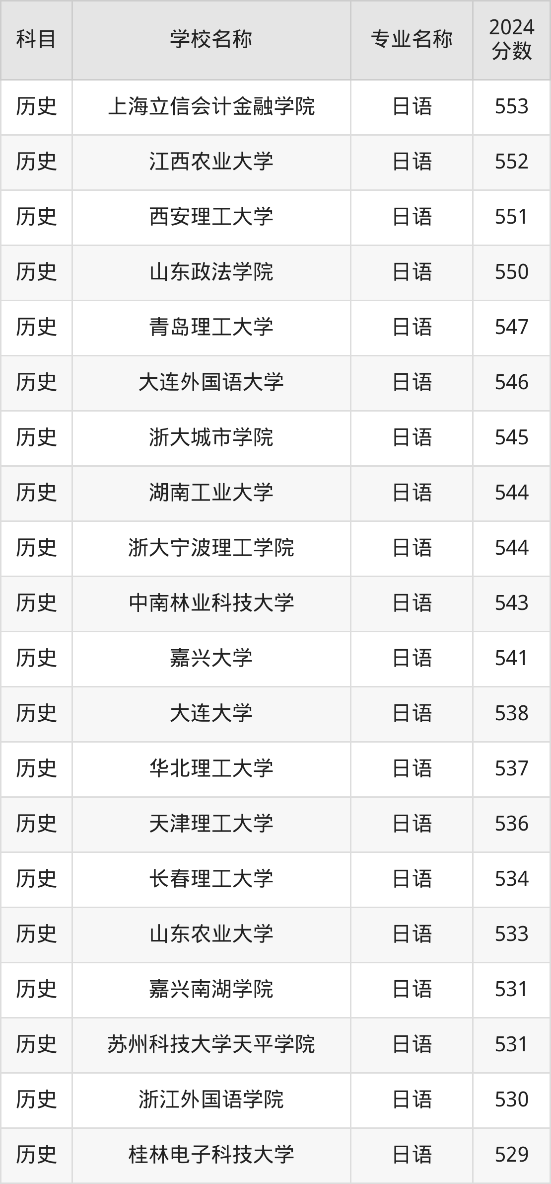 | 学校名称 | 专业名称 | 2024 分数 |