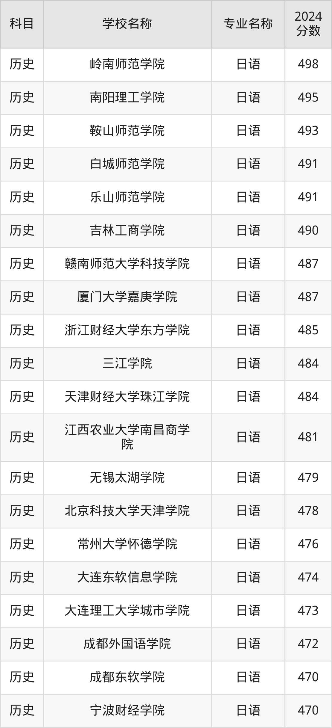 | 马鞍山学院 | 日语 | 462 |