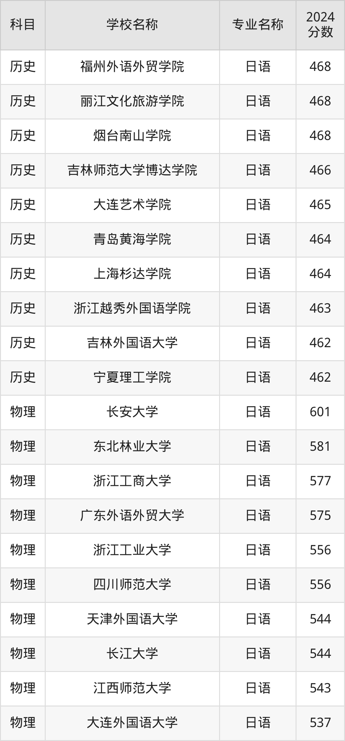 | 安徽外国语学院 | 日语 | 466 |
