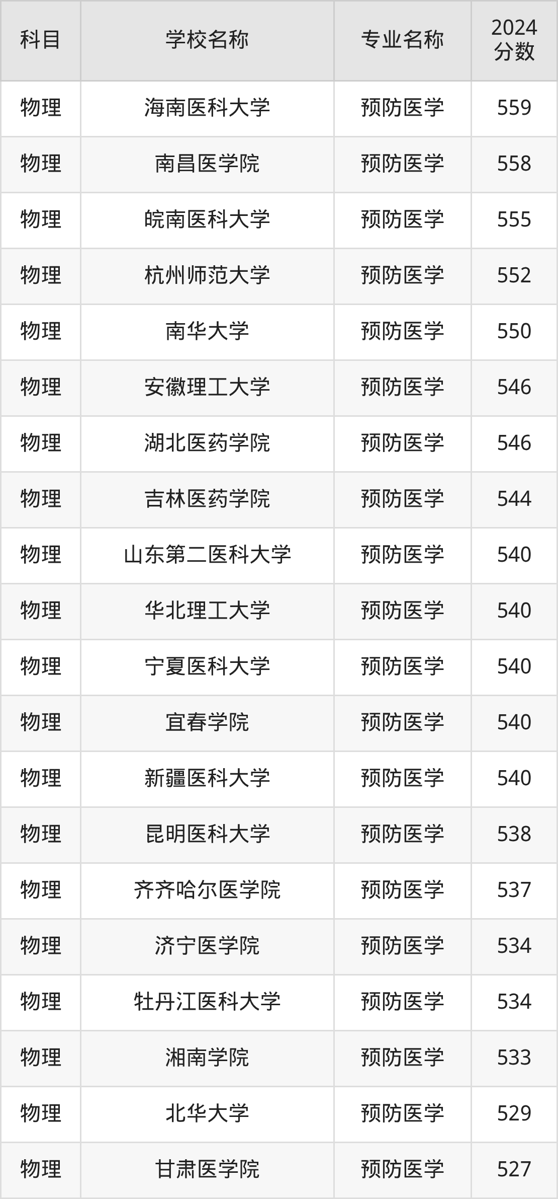 | 江苏医药职业学院 | 预防医学 | 460 |